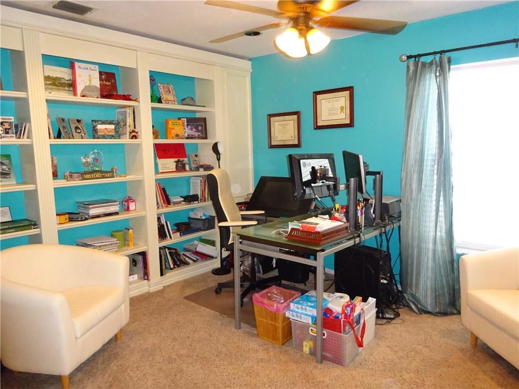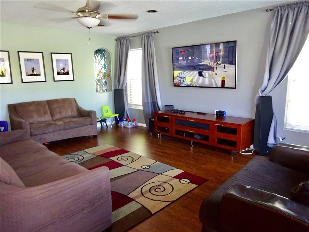 Expansive Felicia Model, 5 bedrooms 3 bath with a loft, (one bedroom which is currently a office with a full bath on the ground floor) Wide water views, fully fenced yard, infinity pool, extra high ceilings and decretive moldings, updated kitchen, granite counters, no carpet, double door entry to master bed with sitting area and bath with bidet, roman tub. Gated Silver Lakes community, ready to move in. Great Schools, great location!
