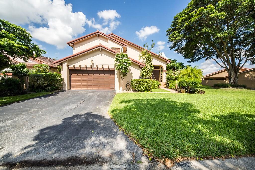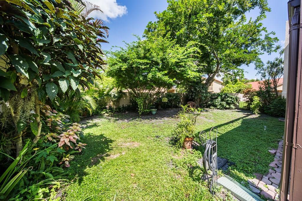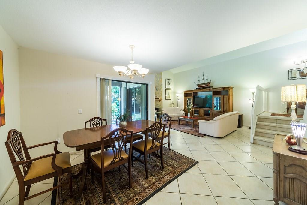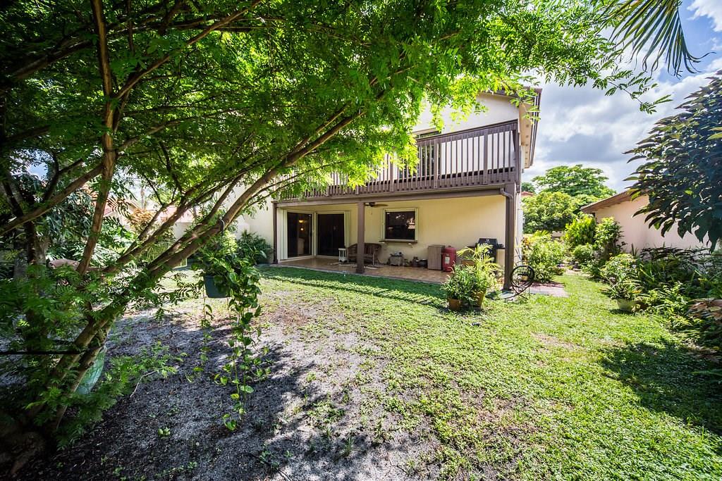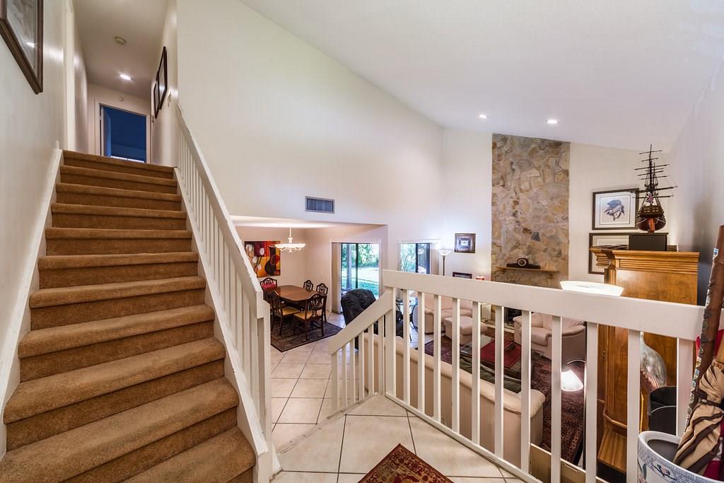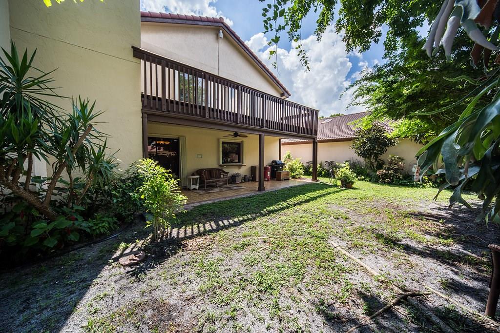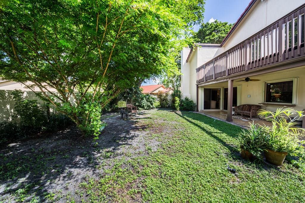 Beautiful home w/ private, lushly landscaped, enclosed back yard, surrounded by well-maintained green common area*roof 2008*one bedrm & full bath on first floor,*master suite, 2nd bedrm & full bath upstairs*remodeled kitchen w/island & SS appliances*formal dining room leads to gracious living area with high vaulted ceiling and attractive fireplace*master suite include sliders to balcony & huge bathrm * three closets*accordion shutters*roof 2008*guard gated community w/clubhouse, pool, tennis & more!