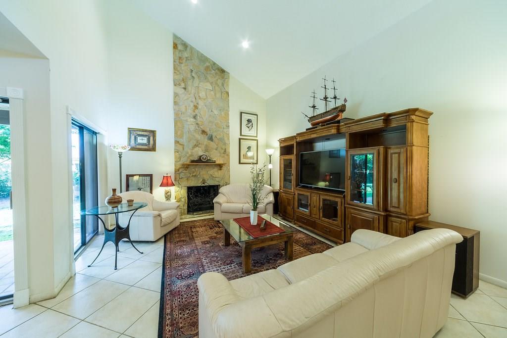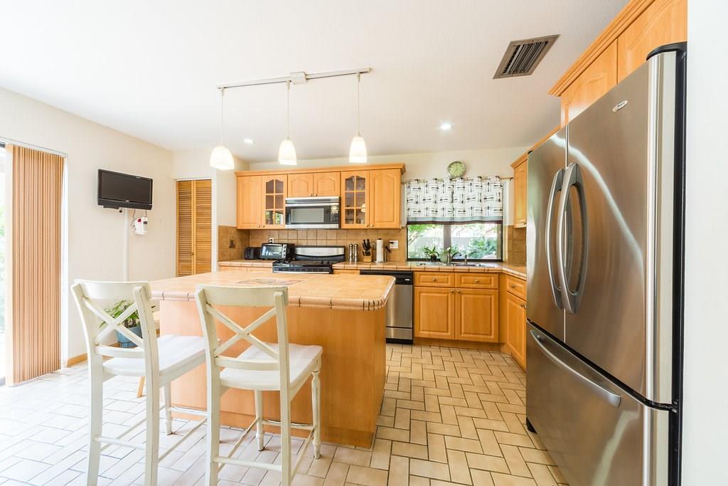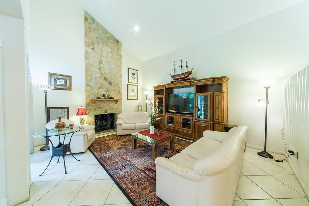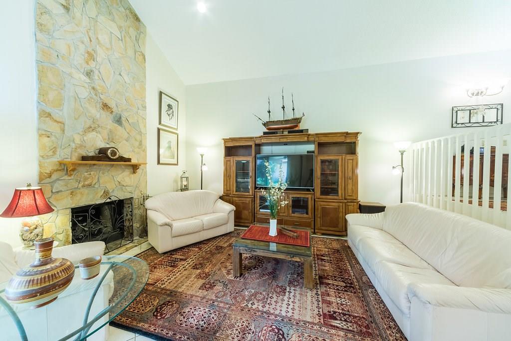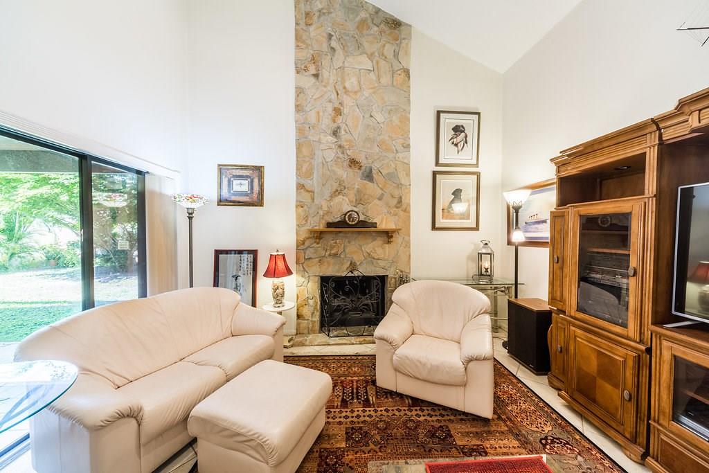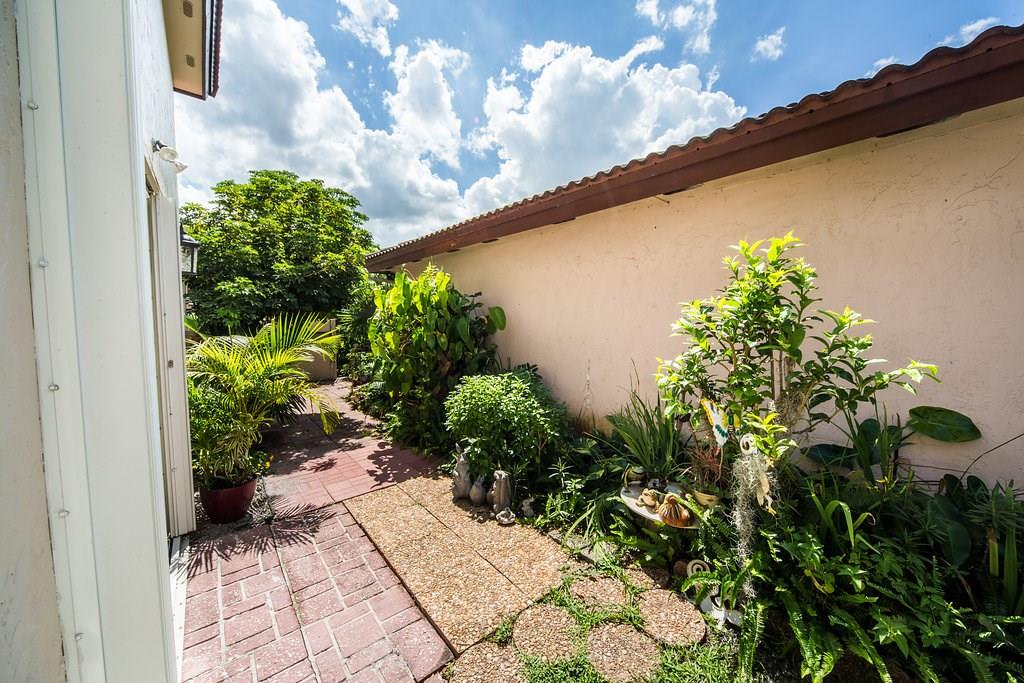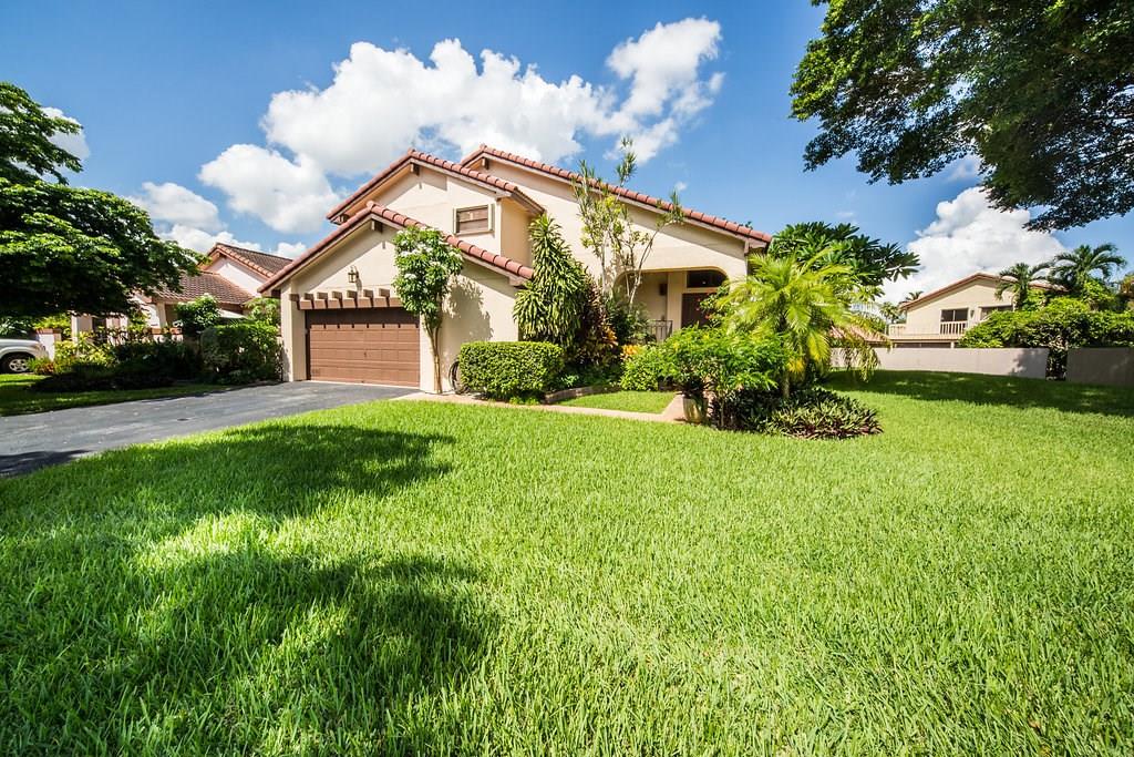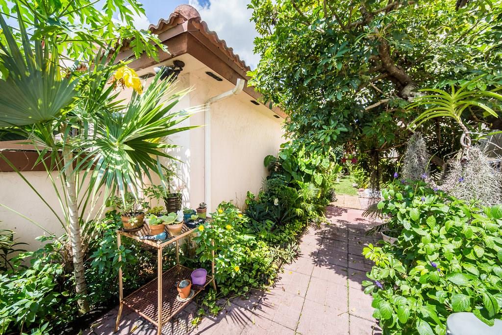 Beautiful home w/ private, lushly landscaped, enclosed back yard, surrounded by well-maintained green common area*roof 2008*one bedrm & full bath on first floor,*master suite, 2nd bedrm & full bath upstairs*remodeled kitchen w/island & SS appliances*formal dining room leads to gracious living area with high vaulted ceiling and attractive fireplace*master suite include sliders to balcony & huge bathrm * three closets*accordion shutters*roof 2008*guard gated community w/clubhouse, pool, tennis & more!