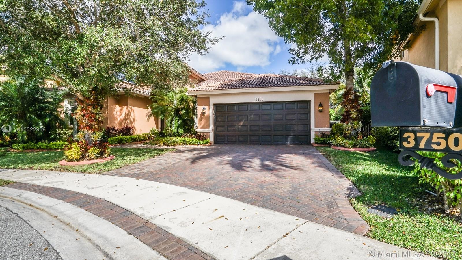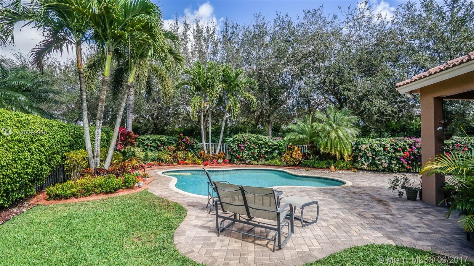 ISLES AT WESTON, LARGE ONE STORY 4 BEDROOMS AND 3 FULL BATHS HOME, SPLIT DESIGN, OPEN FLOOR PLAN, FRESHLY PAINTED, HUGE PATIO WITH POOL IN LARGE LOT PIE SHAPED, WITH LAVISH GARDEN FRONT AND BACK, HOUSE SITS AT ENLARGED STREET LATERAL CUL-DE-SAC. THREE BEST A+ RATED SCHOOLS, ARE AT WALKING DISTANCE; MANATEE BAY ELEMENTARY, FALCON COVE MIDDLE AND CYPRESS BAY HIGH. BEST CLUB HOUSE IN WESTON WITH ALL THE AMENITIES. BEST PRICE PER SQUARE FOOT IN ISLES AT WESTON, THE NEWEST & LAST BUILT NEIGHBORHOOD IN WESTON. EASY TO SHOW ON SUPRA WITH CBS CODE.