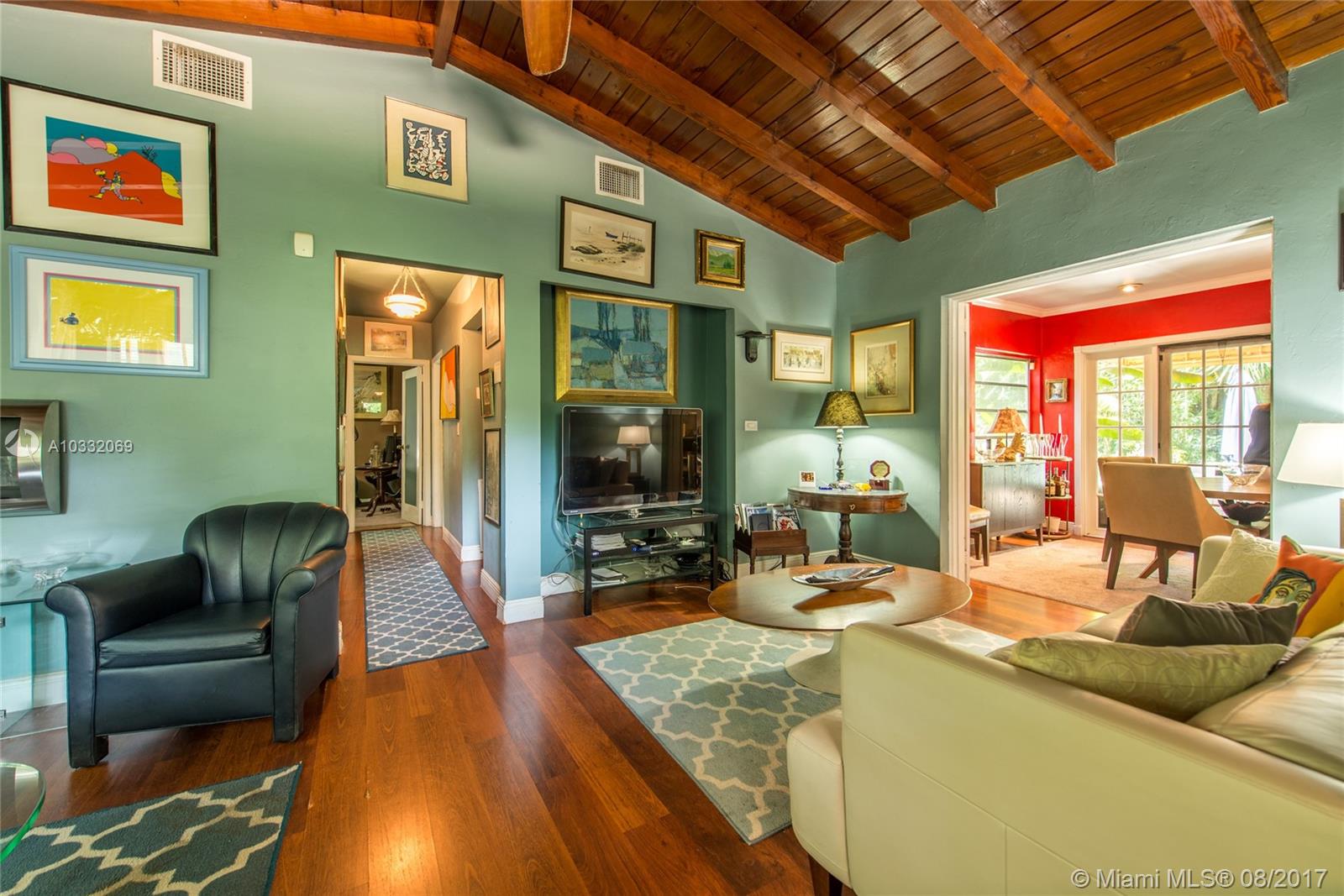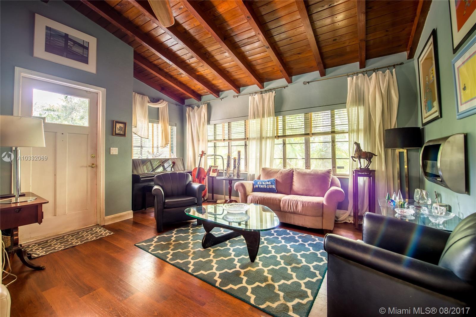 Classic 1948 bungalow, set within a lush botanical garden in prestigious South Coconut Grove. Gated 15,000 SF lot with ample room for expansion of current home. Original architectural details include vaulted wood beamed ceilings, wood & terrazzo floors, Dade County Pine paneling and Old Miami-style screened porch. French doors open to expansive tropical oasis which surrounds free-form pool with waterfall. 3 BR/ 1 BA + 1CG. Close to the Grove village center and minutes to downtown, MIA and the Beaches.
