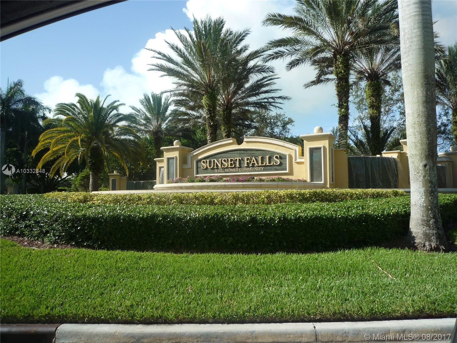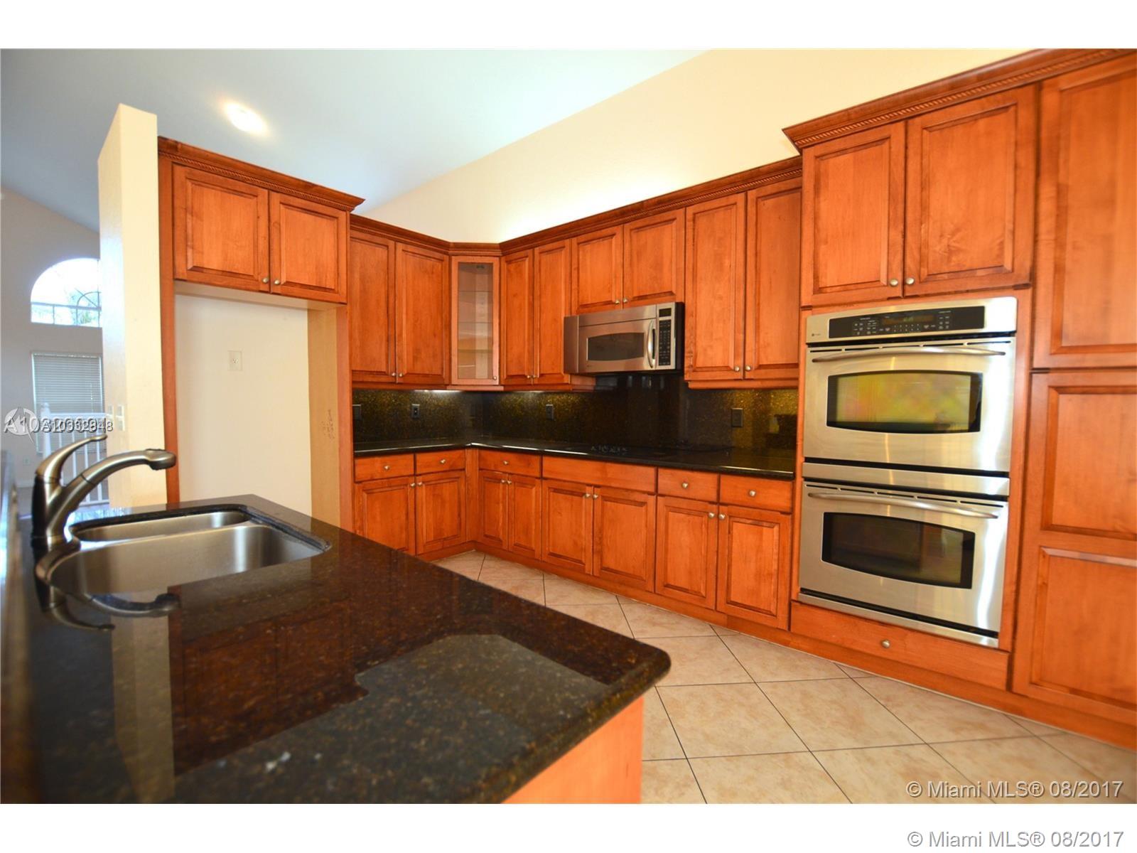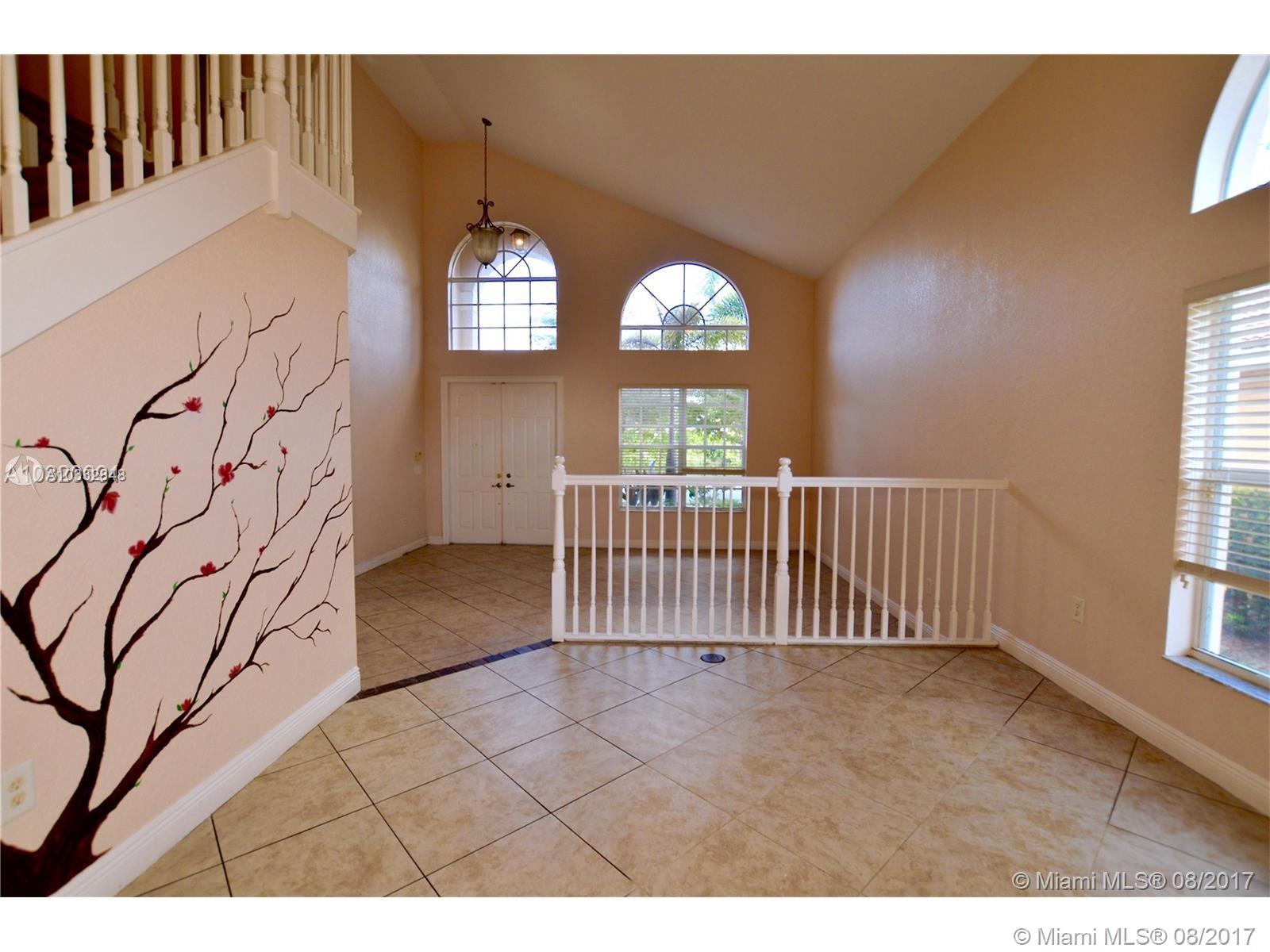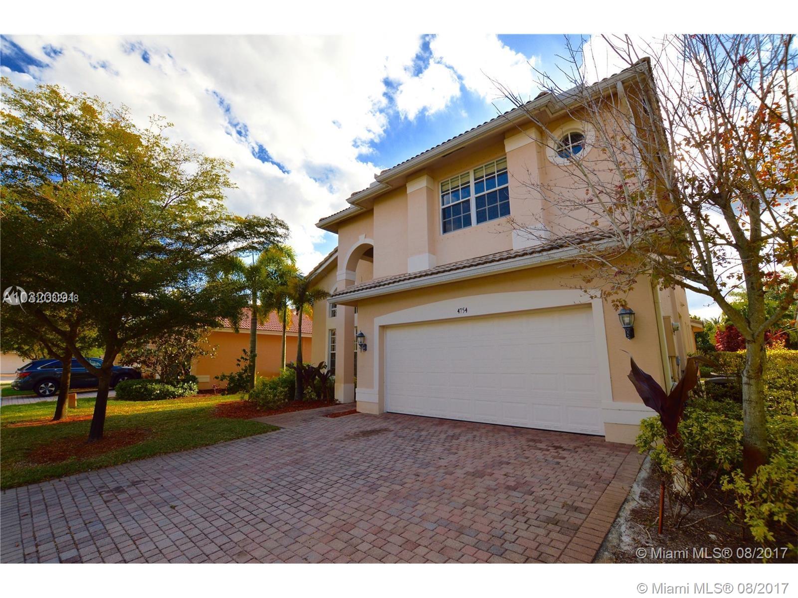 Spectacular value in manned-gated resort-level Sunset Falls community of western Miramar. 4 bedrooms, 3 bathrooms, 2 car garage, upgrades throughout. 1 bedroom and full bath downstairs. Wood cabinetry, granite countertops. Spacious master suite upstairs with his and her separate amenity bathroom suite, double walk-in closets. Big backyard. Great location on quiet road that ends in cul de sac. Walk to lakefront pool, clubhouse with fitness center, tennis, basketball, gazebo, tot lot and more. Alarm system, on site management in premium gated community. Top rated Sunset Lakes Elementary. Corporate-owned. Sold in as-is condition. Seller selects title and escrow agent.