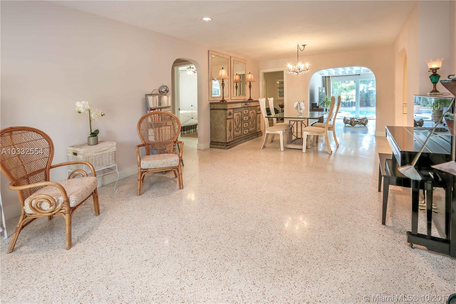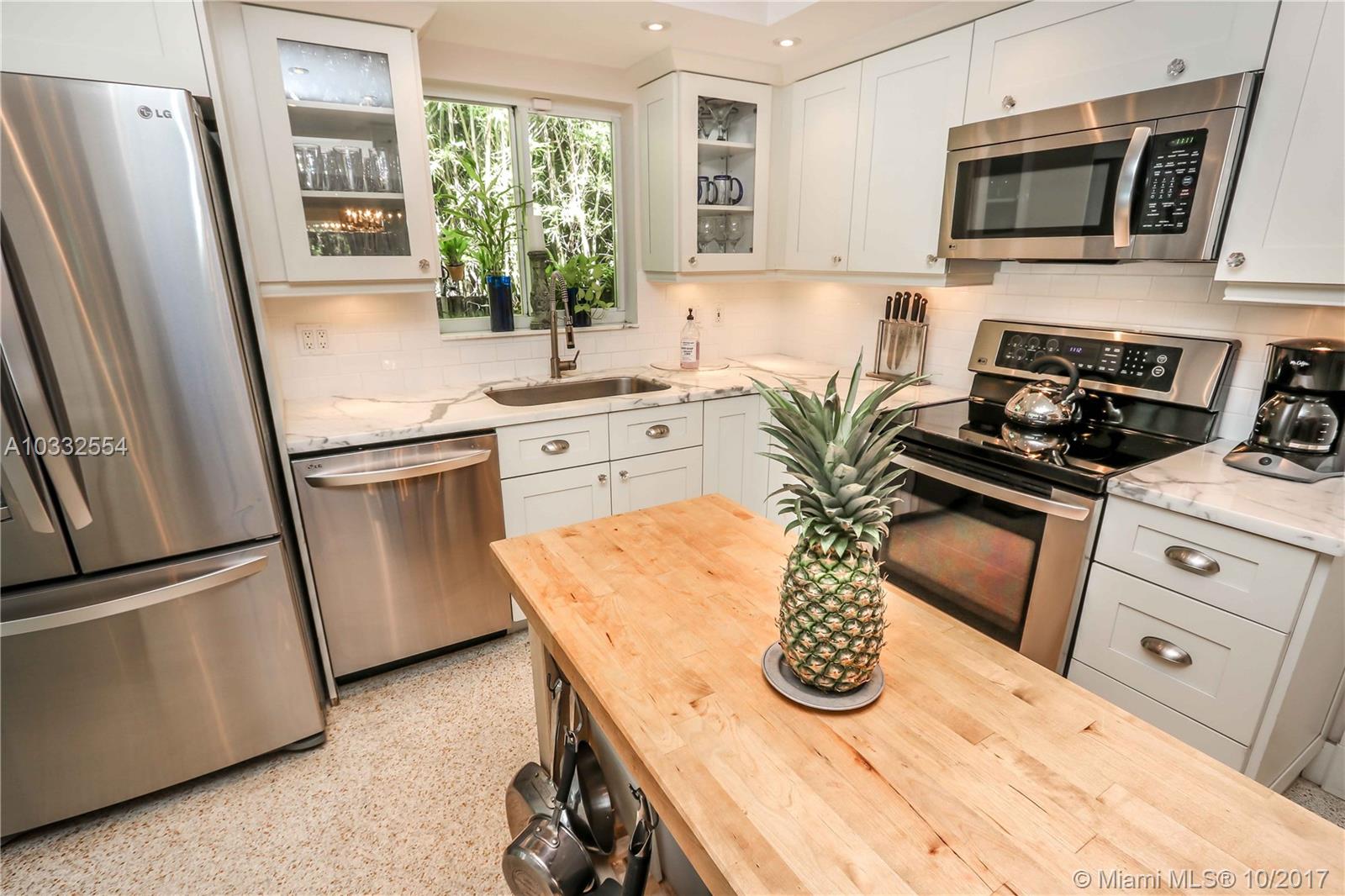 Magnificent location!East of US1,2blocks to N. Lake & steps from the golf course.Impressive 3/2 w/spectacular large resort style pool,lush tropical landscaping & fenced yard, perfect for entertaining!Bring family & friends to enjoy your fully equipped outdoor gourmet kitchen & bar boasting state of the art Al Fresco Grill,fridge & sink.Light,immaculate open layout featuring Terrazzo floors & completely updated throughout. Carrara Marble counters,white shaker cabinets, SS appl.,recessed lighting,exposed wood beam ceilings,built in closets.Spacious oversized family room w/walls of ceiling to floor windows & disappearing sliding glass doors allow you to bring the outdoors in,+ formal dining/ living rms.Plenty of storage: laundry room,pantry w/a/c garage. Over 2K total sq.ft.