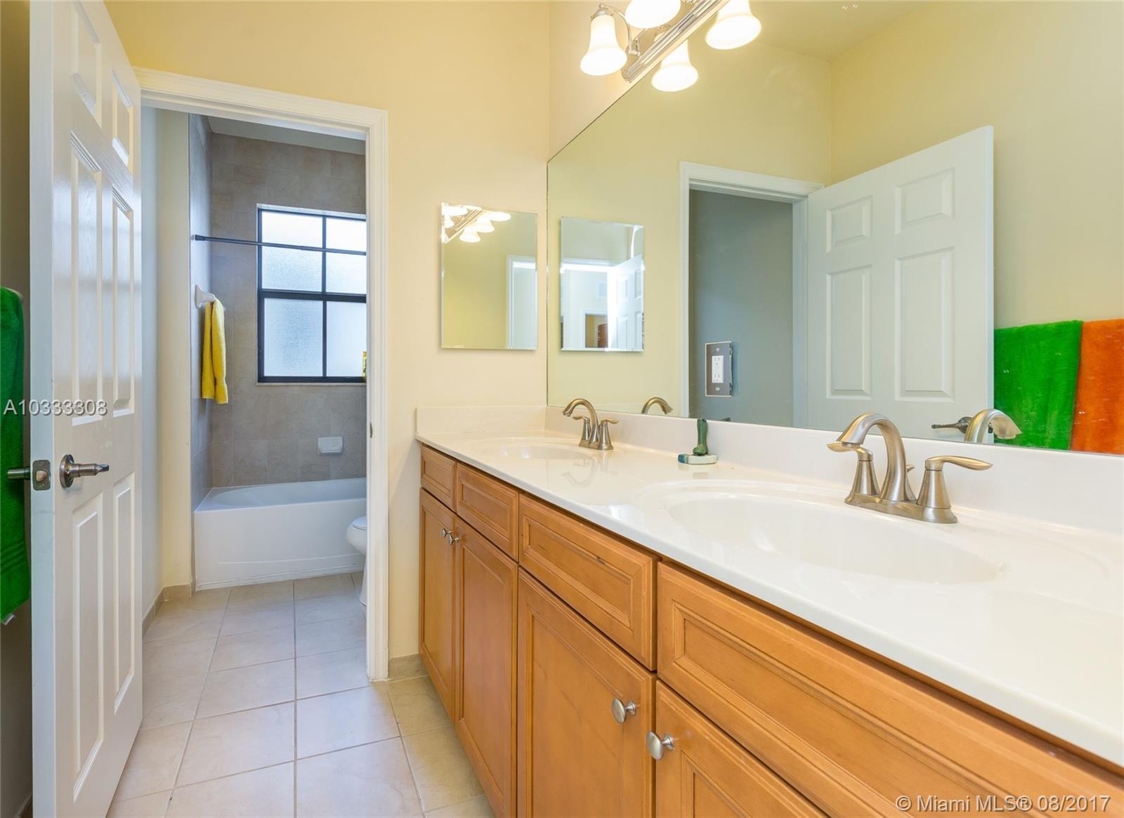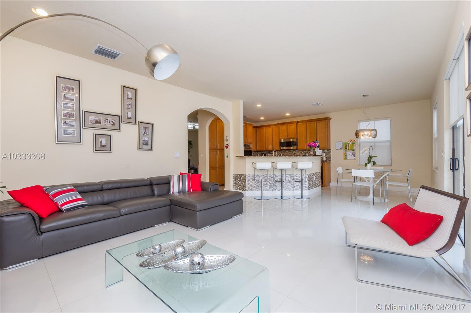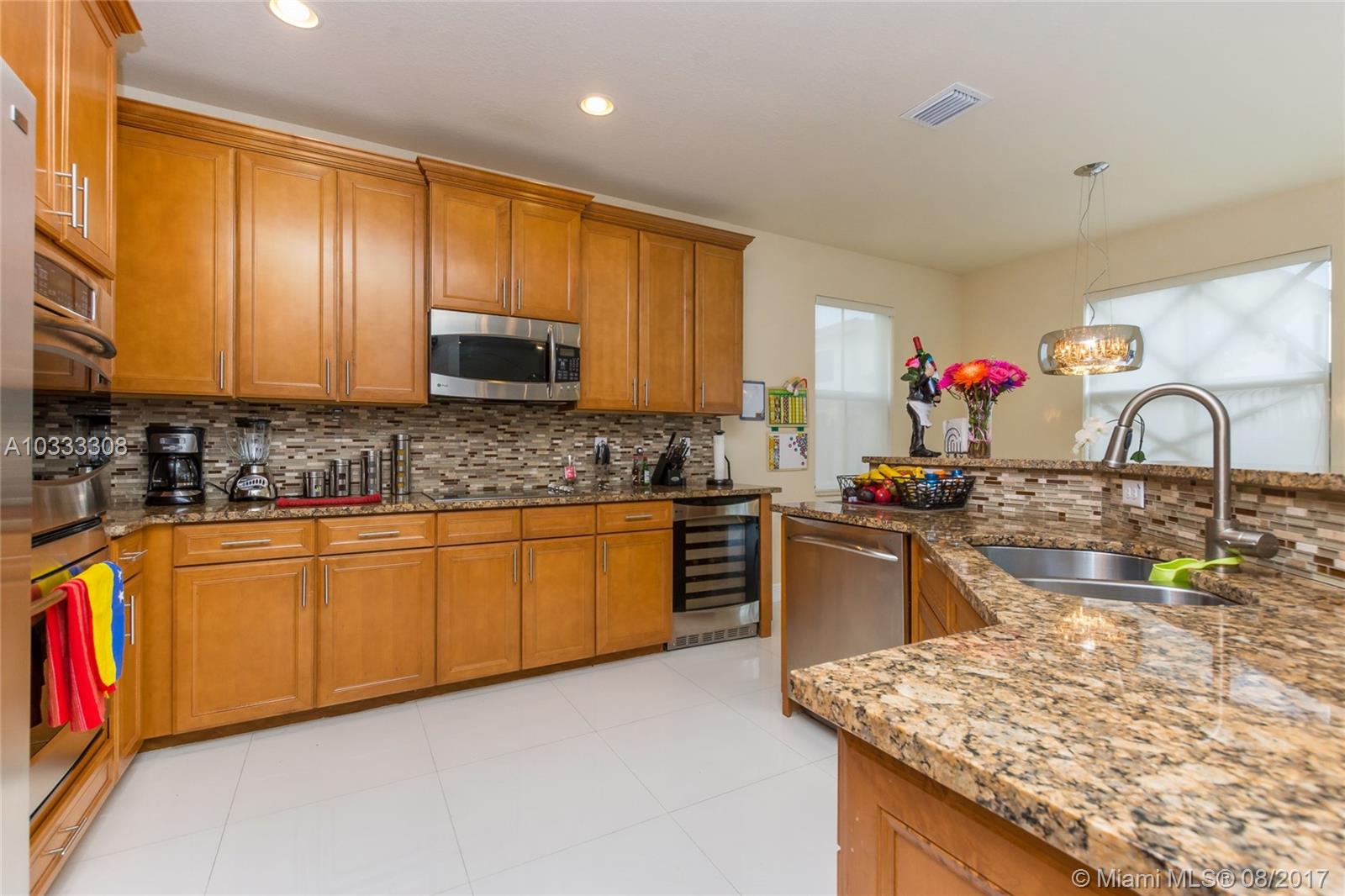 This immaculate, professionally-decorated 2-story home with open space plan and private patio invites comfort, and exudes modern elegance. With 4 bedrooms, 3 and a half baths, generous living space and stylish finishes, you'll enjoy a perfect setting for relaxing and entertaining. Open kitchen with Italian cabinetry, wine chiller and marble counter tops, overlooking the large family room and pavered patio. Beautiful porcelain floors and plenty of natural night flow throughout the home's open, airy layout. Ceramic tiles on stairs and bedrooms upstairs. Master bedroom with large walk in closet. Gated and quiet community with A+ schools. Community club with over 28,000 sft of amenities which include: gym, tennis, billiard room, children's splash zone and much more will be ready this year.