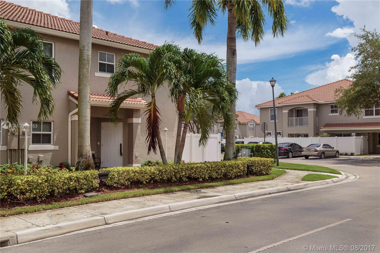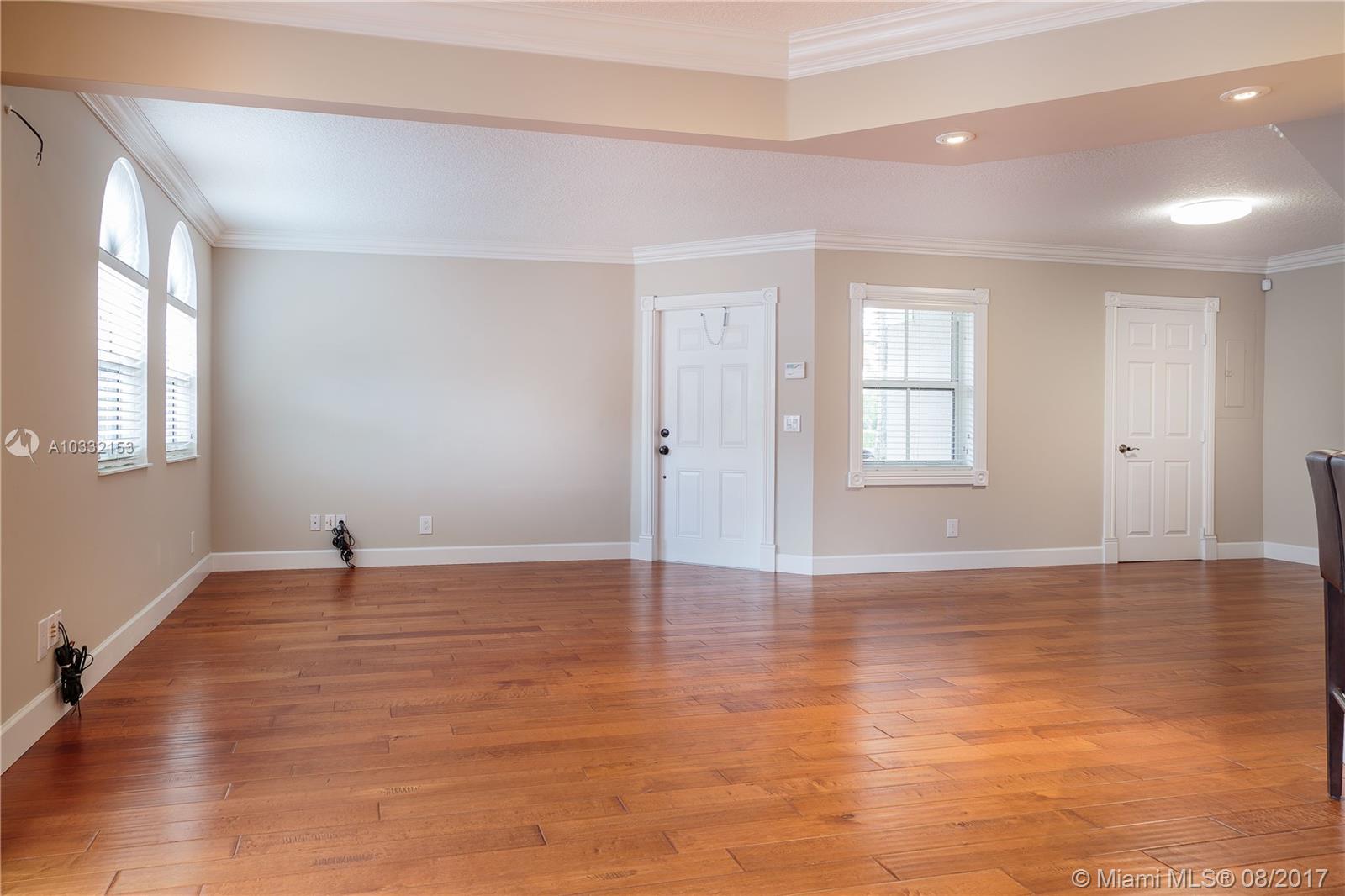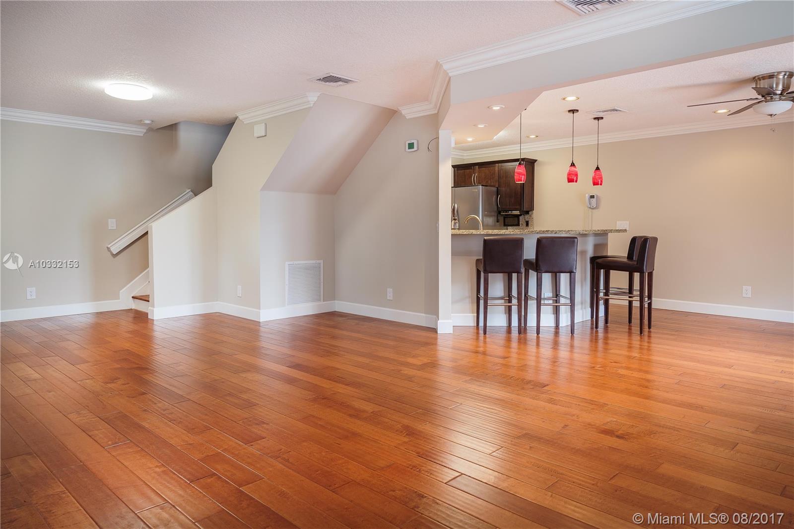 Beautiful and updated corner townhouse. Ready to move in, and all the work has been done for you! Wood floors throughout, granite kitchen, upgraded baseboards and moldings. Entertain in the lighted private patio/courtyard which opens off of the kitchen and great room. This home is centrally located with easy access to I-75, Palmetto Expressway, Florida Turnpike, shopping, parks and dining. The community is well-kept, safe, lovely, and includes a community pool and child's play area.