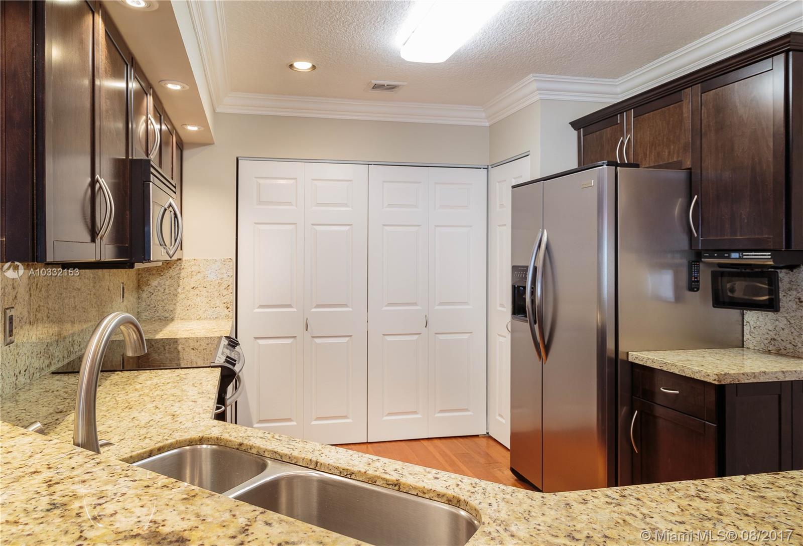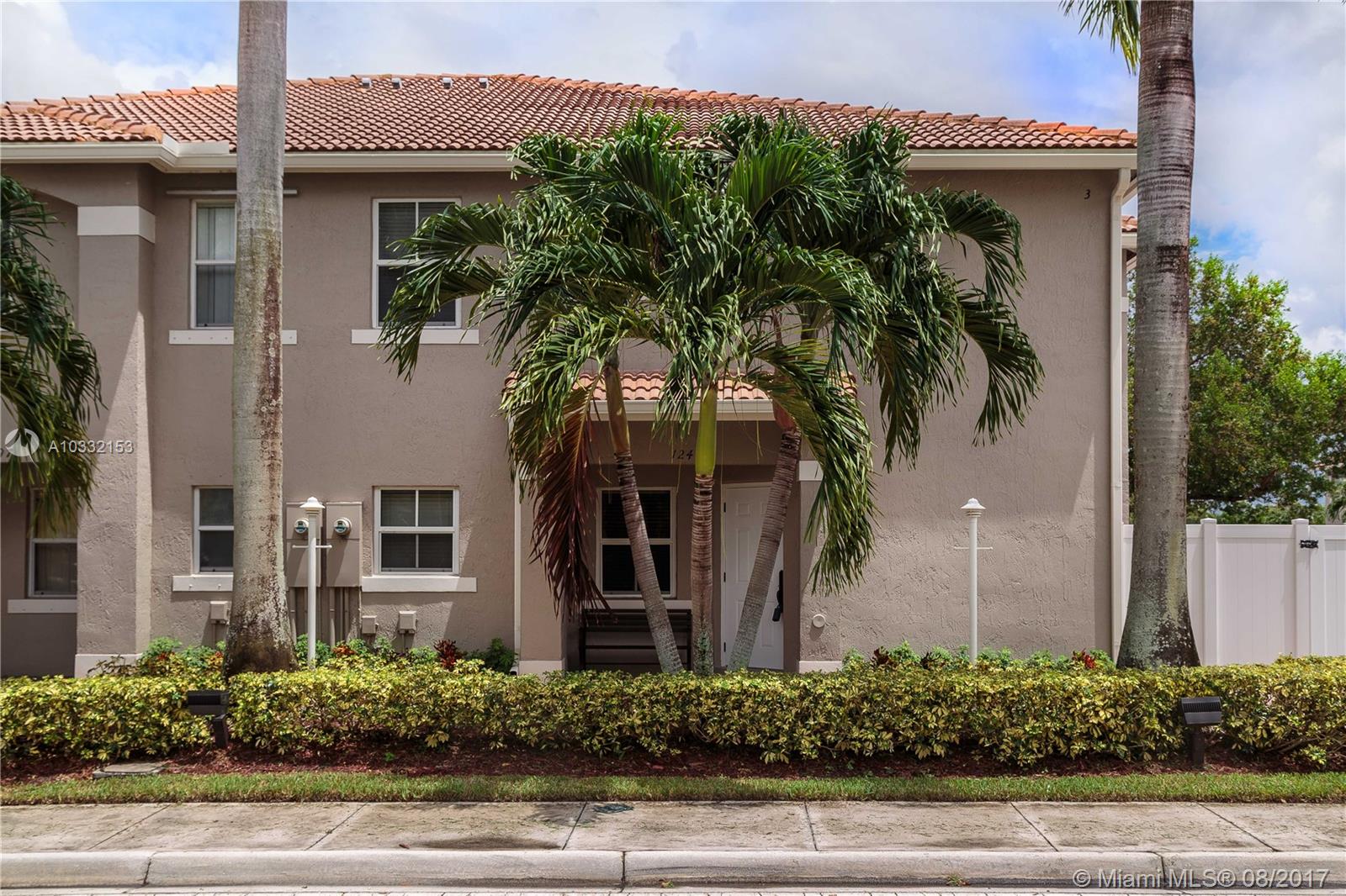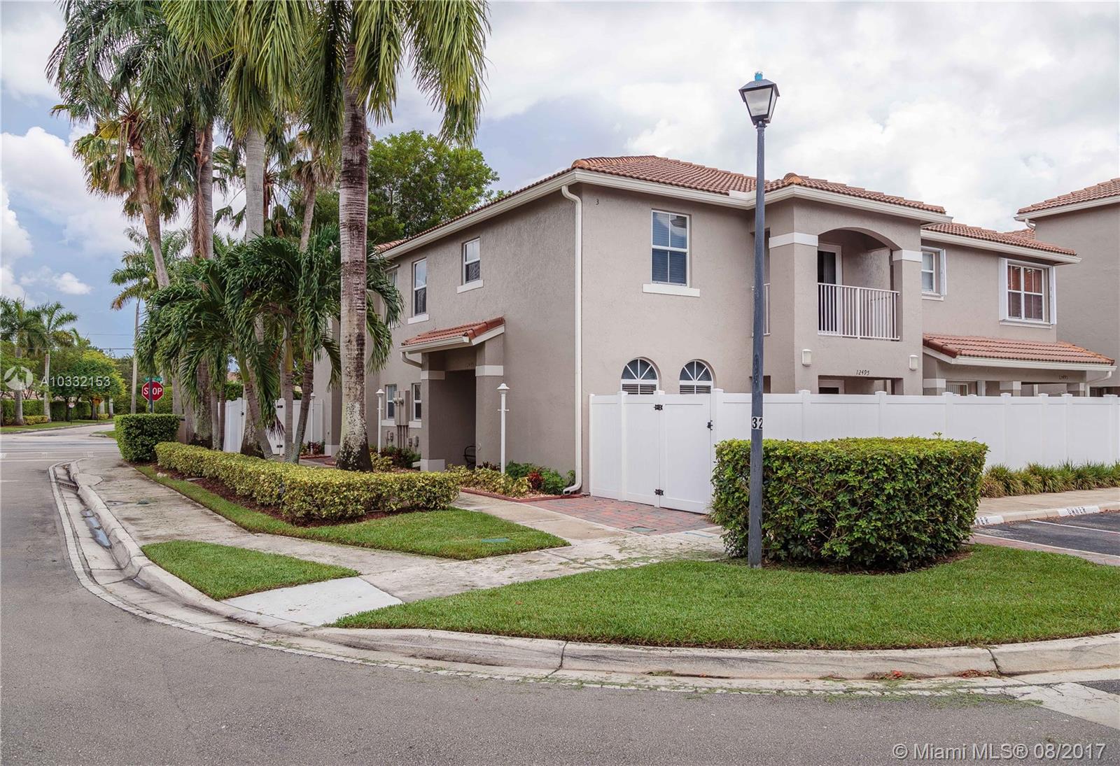 Beautiful and updated corner townhouse. Ready to move in, and all the work has been done for you! Wood floors throughout, granite kitchen, upgraded baseboards and moldings. Entertain in the lighted private patio/courtyard which opens off of the kitchen and great room. This home is centrally located with easy access to I-75, Palmetto Expressway, Florida Turnpike, shopping, parks and dining. The community is well-kept, safe, lovely, and includes a community pool and child's play area.