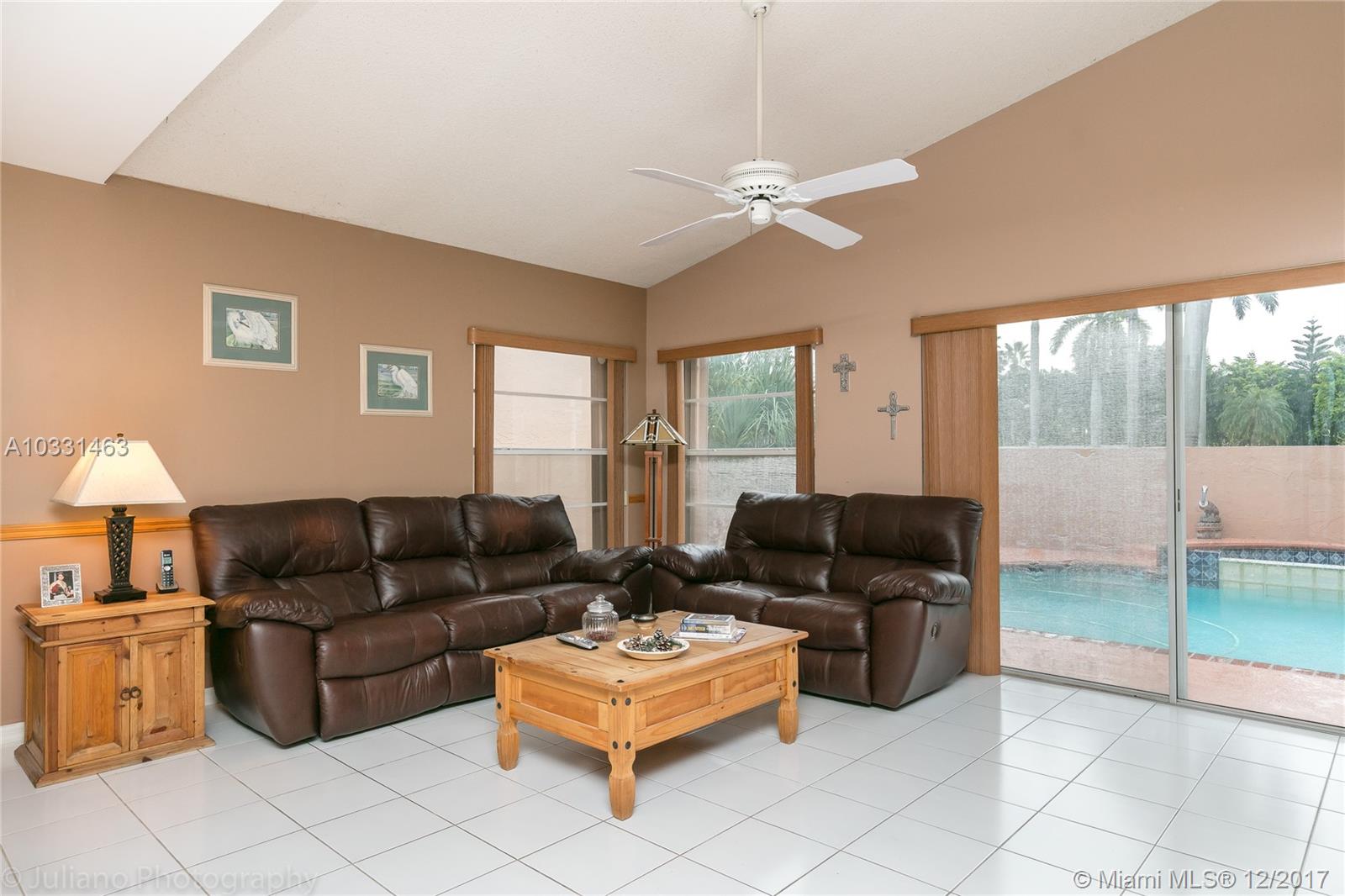 Elegant and well mantained 4 bedroom 2 ½ bath converted to a 3 bedroom 2 ½ bath in the prestigious Lakes On The Green. The first floor has a foyer entry, formal living room, separate dining, and huge master bedroom, bathroom and walk in closets. The second floor boasts 2 bedrooms and full bath. Home features 2 car garage, Accordion hurricane shutters throughout, pool with Jacuzzi, and no neighbors in the front or back.