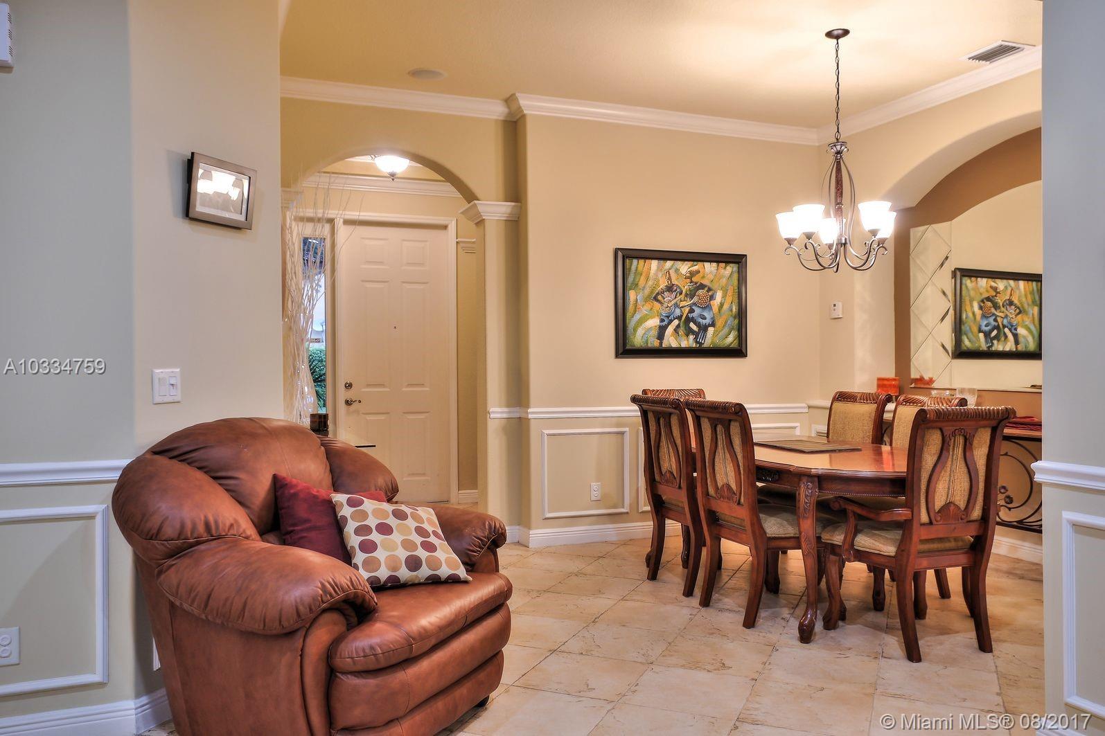 Stunning single family home located in the highly sought after community of Bellagio in Vizcaya, West Miramar. Spacious 4 bedrooms, 3 bath home, freshly painted, gourmet kitchen; with ss appliances and breakfast space, master bath with double sinks, walk in closet. Property is former model home with lots of upgrades; walls with rounded corners, elaborate crown molding throughout, custom designer touches, marble counter tops and more. Conveniently located across the street from clubhouse with gym and pool. Plenty space for entertainment in the fenced in back yard. Conveniently located within 10 minutes of I-75, 836, Turnpike, and I-95, and community has lots of amenities to entertain families . The Community contains Sommerset Academy; an award winning elementary and middle school.