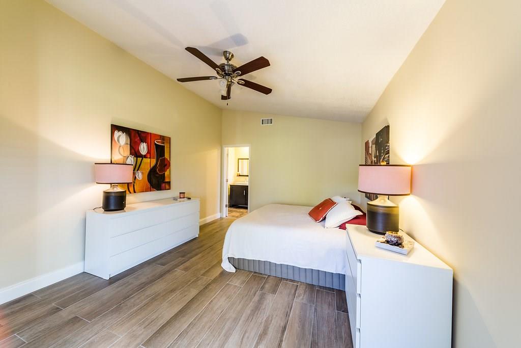 This beautifully updated 3 bed/2 bath home is designed for enjoyment. Bright, open floor plan & split bedrooms provide balance between convenience & privacy. Totally remodeled kitchen features stainless appliances* master bath boasts new designer tub, sinks & vanity. New roof* Extra large, screened patio offers a wide lake view, adding to the ambiance of this charming home. Top-rated schools* restaurants, shops & supermarket of Town Center are in walking distance. Make this your home today!