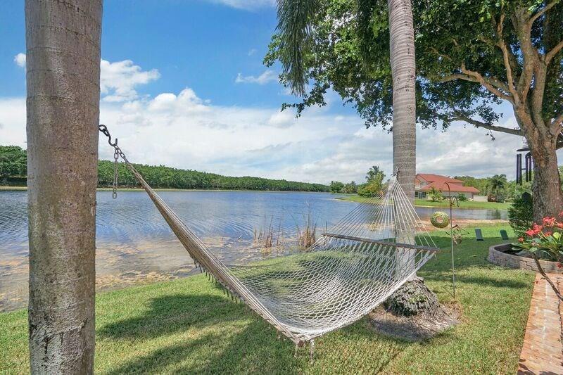 Hibiscus Island! The home rests on a large sized pie-lot, with manicured landscaping. You will see one of the best lake views in all of Weston so you can relax and watch the beautiful sunsets. Inside the home, the high ceilings make it feel spacious and bright. There is a newly remodeled master bedroom, bathroom. and kitchen that opens up to the family room. In addition, there is loft that opens up to the main part of the house and offers beautiful outside views as well. Making this a true gem. ?