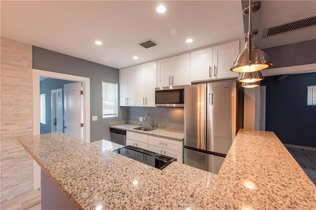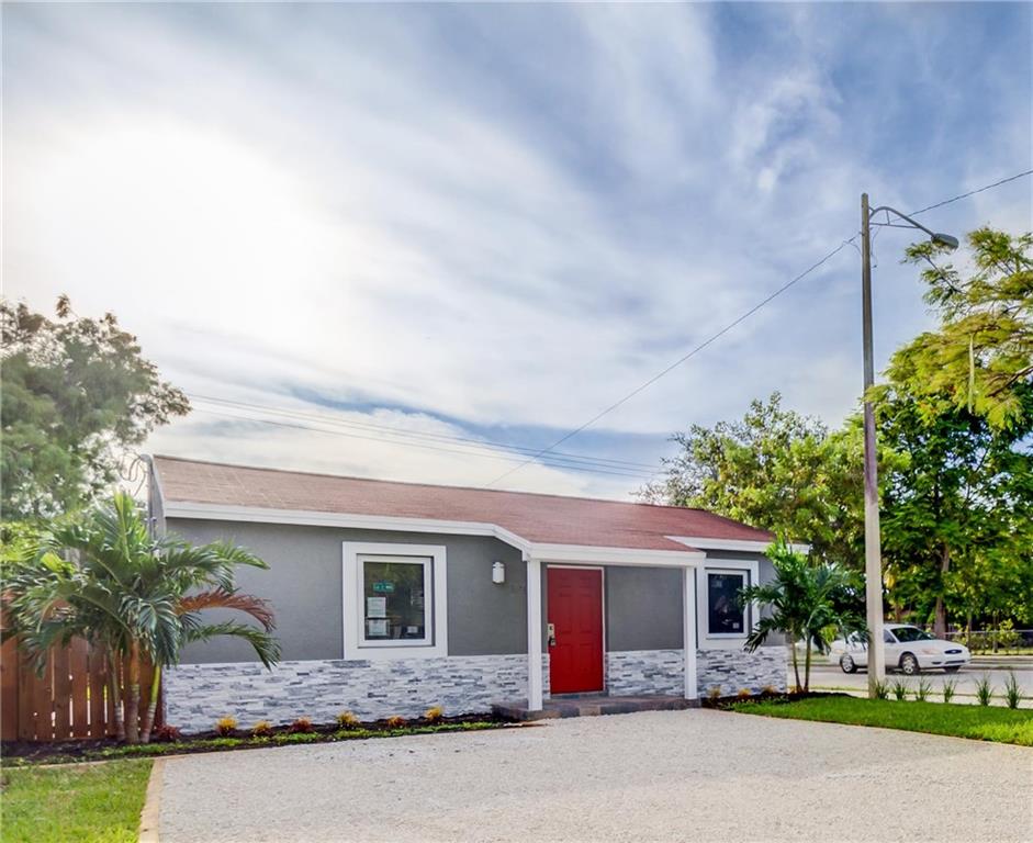 Spectacular remodeled mid-century home between Downtown, Flagler Village & Wilton Manors. Wide open living space with gray tone wood-like tile floors, white stacked stone wall. Brand new stainless appliances, 42" wood cabinetry, granite snack bar & counters. Two contemporary master baths floating vanities, glass tiles. Huge dressing closet. Brand new plumbing, electric, impact windows & doors, irrigation, tankless HW heater. Corner lot fenced, room for pool. Slate patio. Exotic landscaping. 2-mi to beach.