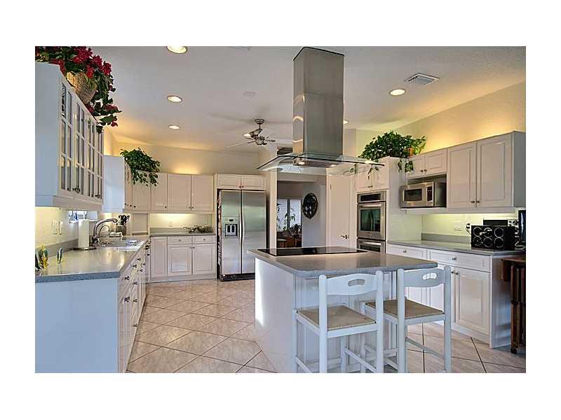 Meticulously maintained home in the prestigious gated Golden Isles community. This 4/4.5 home boasts high ceilings, large open flr plan w/over 3500 sqft of living area. Oversized eat-in kitchen with center cooking island, breakfast bar, SS appliances & lo ts of natural light. Large master suite w/sitting area & water views. Amazing pool patio area entertain with heated pool, overlooking 85ft of waterfront. Private dock, no fixed bridges, deep water ocean access, impact windows/doors, and 2 gas lines.