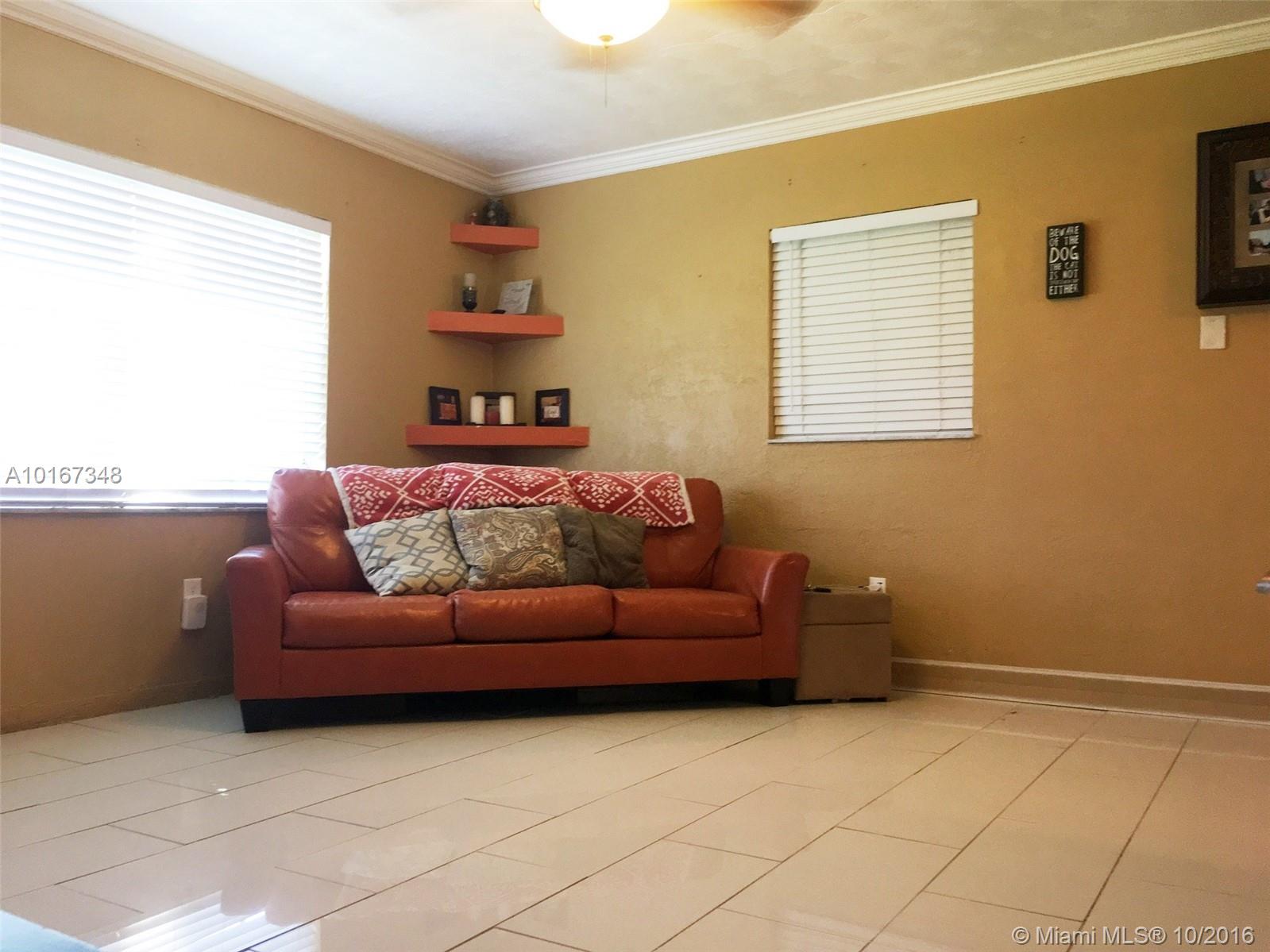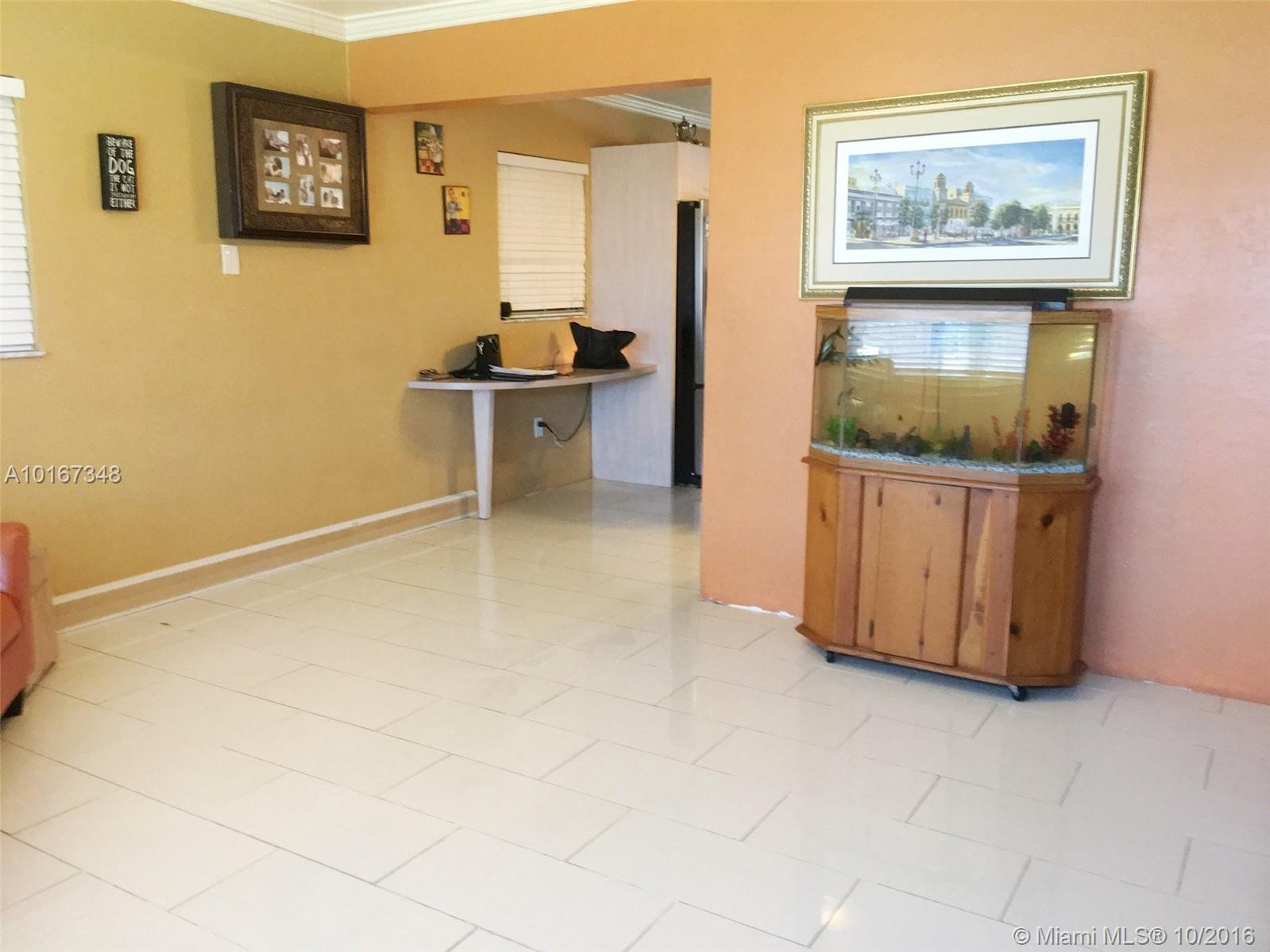 Cute move in ready 2/1, starter or retirement home. Tile floors throughout. Updated kitchen w/stainless steel appliances and built-in desk for computer. Crown molding in living room, dining area, kitchen & hall. Renovated bathroom w/water saving toilet. Screened patio. Above ground pool and large shed. Room for trailer or RV on West side of house, behind fence. Large utility area with extra storage space. (Washer/Dryer will be replaced, center island in kitchen doesn’t convey)