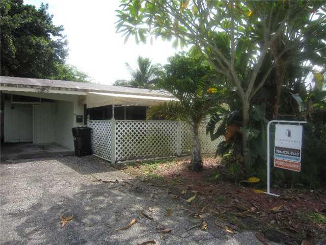 Cozy 3 BR, 1 Bath home in great Fort Lauderdale location close to much more expensive home areas, highways, shopping and dining. Walk to Frost Elementary School. One car carport plus driveway. 3d BR is a converted Florida room. Tile throughout. Large fenc e yard with substantial storage shed. Covered patio in front.