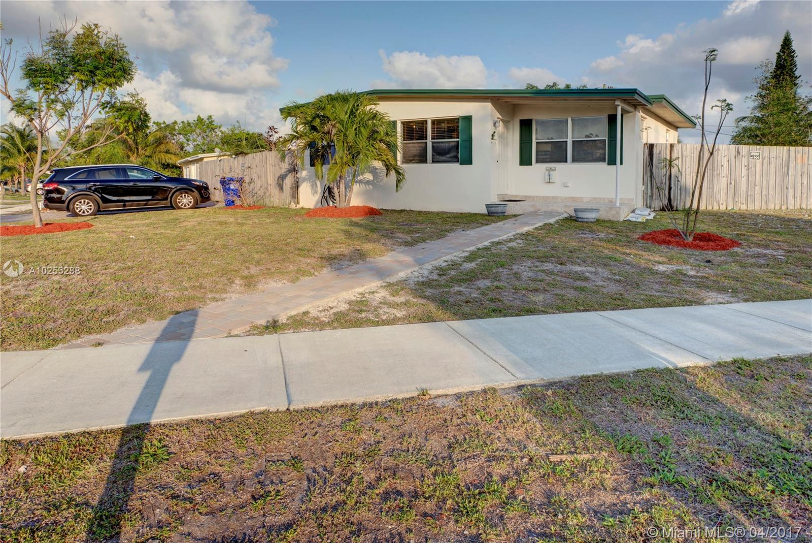Extraordinary opportunity to own this Charming home nestled on Oversized 9233 S/F Corner Lot in the Great location of Pompano Beach. Perfect layout. With 2 bedrooms plus a spacious den that can be used as a third room,New Roof,New A/C Water Heater,Updated Electrical Panel,Recently Remodeled Kitchen,Bath and Appliances,Beautiful tile floors throughout,fresh paint. Outside features new impressive paverd driveway, walkway and a newer 6ft wood privacy fence on both sides. Amazing bang for the buck!!!