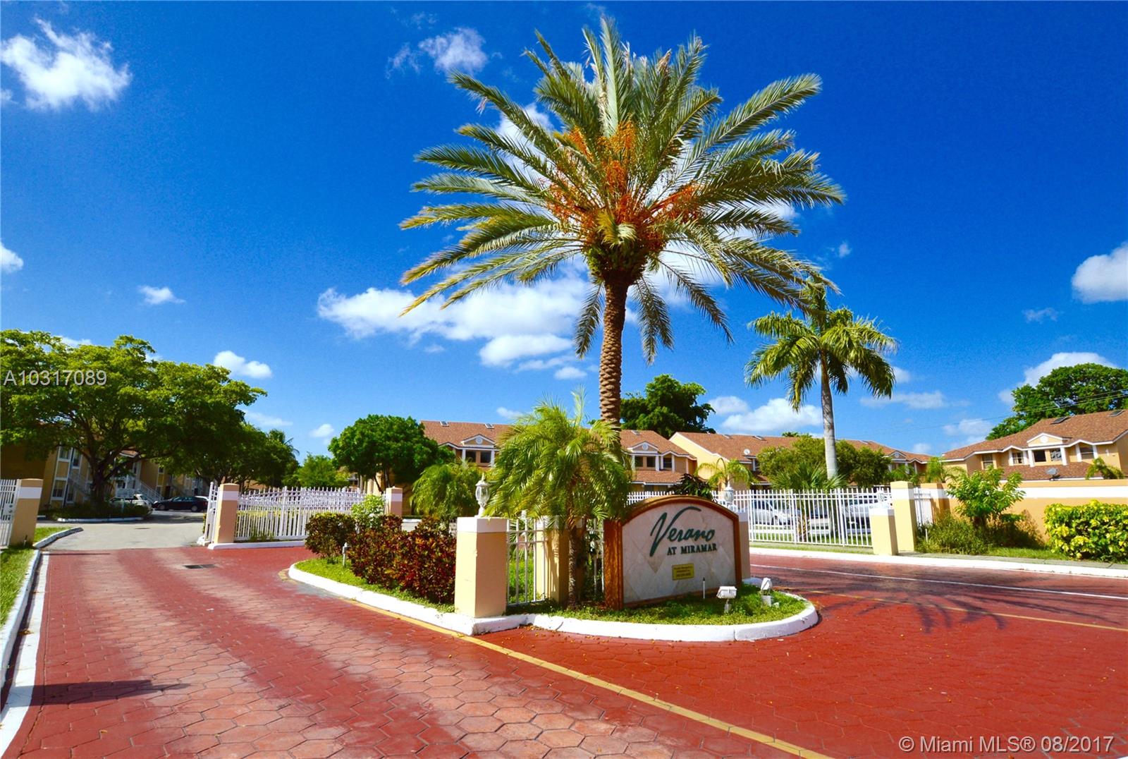 Great 2-story, 2 bedroom, 2 bathroom townhouse in the community Verano located in Miramar. This house has spacious bedrooms with great closet space, open layout, washer/dryer hookup, and it is in a great location. It is close to major roads and highways, Hard Rock Stadium, and shopping centers. Don't let this opportunity pass you, schedule your showing today!