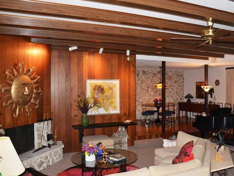 Mid-century modern custom split level home in pristine condition! Master Bedroom, Kitchen & Living Spaces overlook a free form pool in a screened in porch. Hard wood floors & carpet over terrazzo in living room. Over sized living area has beamed ceilings. Florida marble fireplace & dining room wall. Eat in kitchen w/ breakfast bar. Split bedroom floor plan w/ a spacious master has a walk in closet. Carport w/ enclosed garage to accommodate a workshop. New (Trane) A/C, 7 yr roof & updated electric.