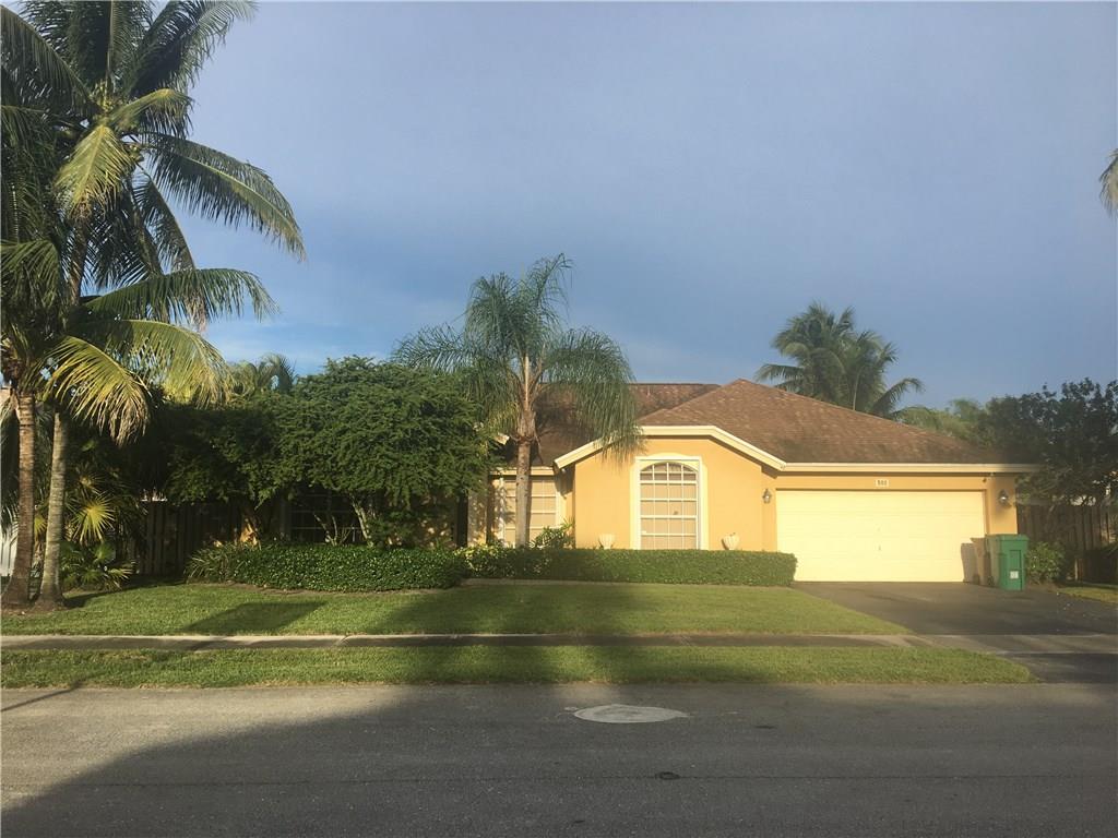 Charming 3BR/2BA in a highly desired school district and a family friendly neighborhood. Home boasts an oversized heated and self chlorinating pool with tropical landscaping and a large covered patio. Open floorplan with lots of windows and natural light and ceiling fans throughout. Master bedroom overlooks pool with cabana bath access. Fenced in yard makes it pet friendly. Hurricane ready with easy to close accordian shutters. Furniture is negotiable. Easy to show!! Come see your future home.