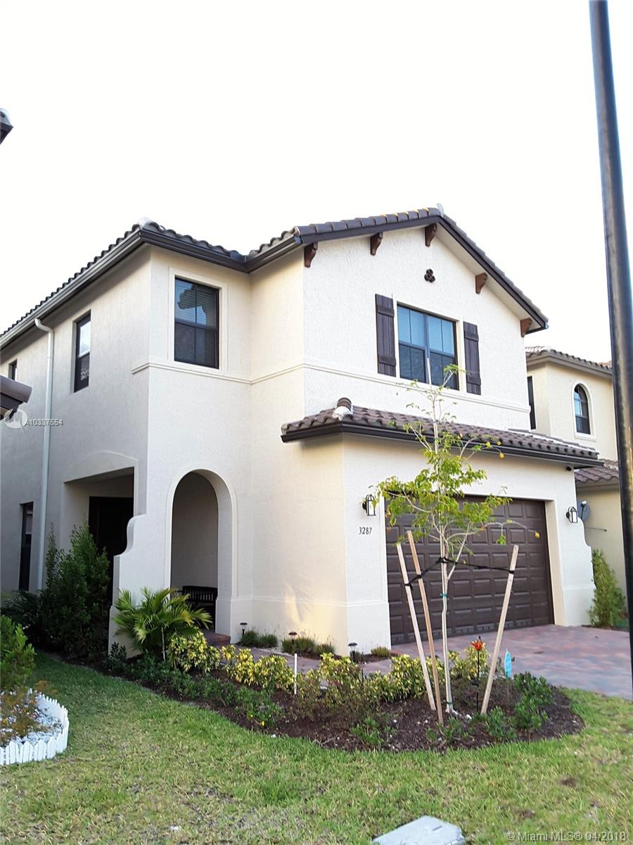 2016 construction-$12K upgrades, low maintenance exterior, yard can be fenced or plants for privacy (verify HOA), large master bedroom + loft, laundry upstairs, near future American Dream Miami Mega mall w/UPSCALE art/entertainment, dining & more, near Miami Lakes & transportation. Security gate entry, LOW HOA. Resort style clubhouse (games, exercise, parties, pool). EASY TO RENT!! Casa construida 2016, granito en cocina/baños, se puede instalar cerca, recamaras amplios, lavadora y secadora segundo piso, seguridad en la entrada, cercano del futuro American Dream Miami Mega mall, entretenimiento y restaurantes exclusivos, cercano de la I-75, 826, gratigny. **Se alquila fácilmente**seguridad en la entrada