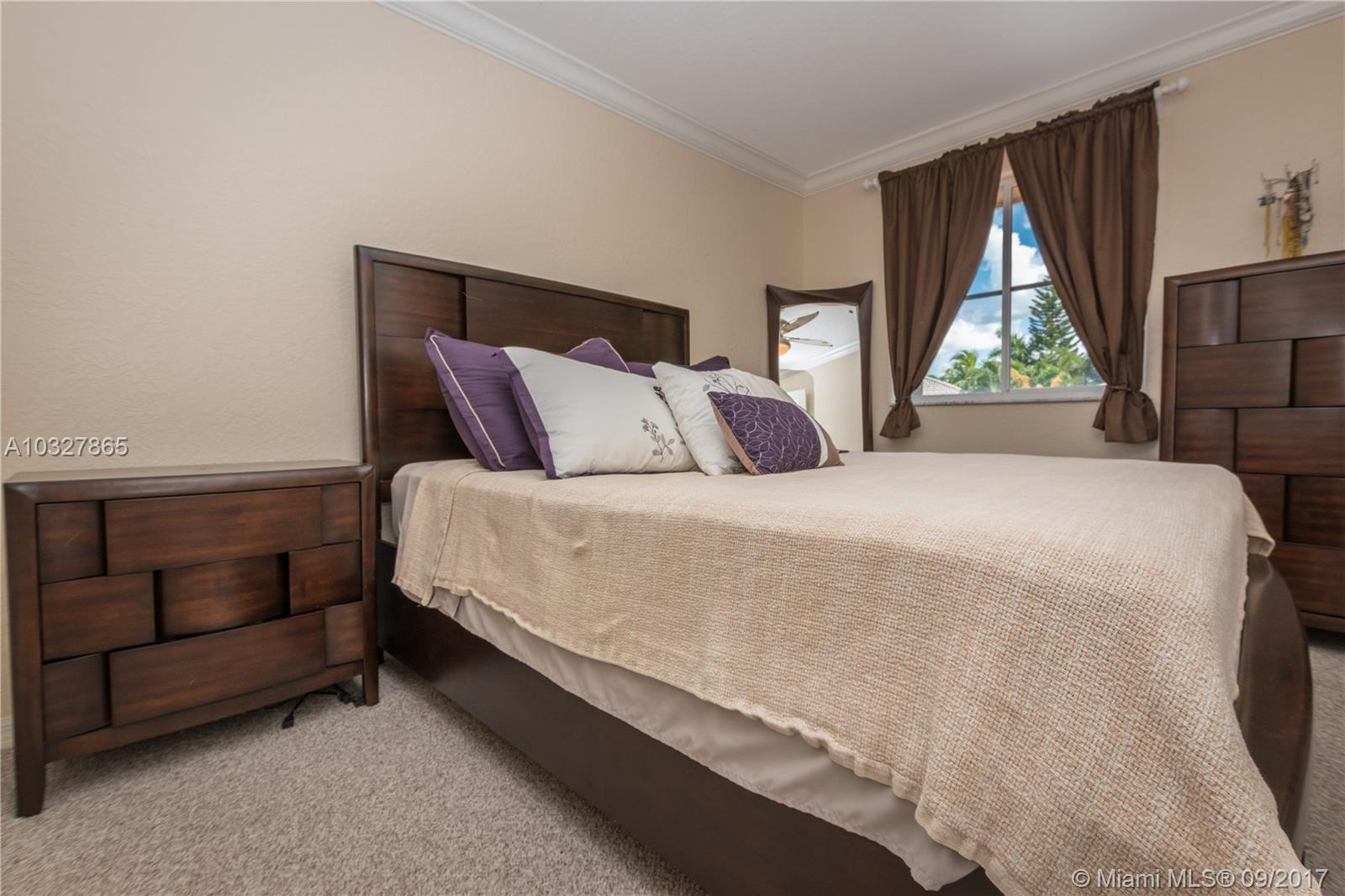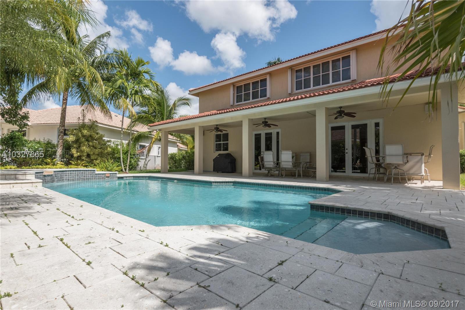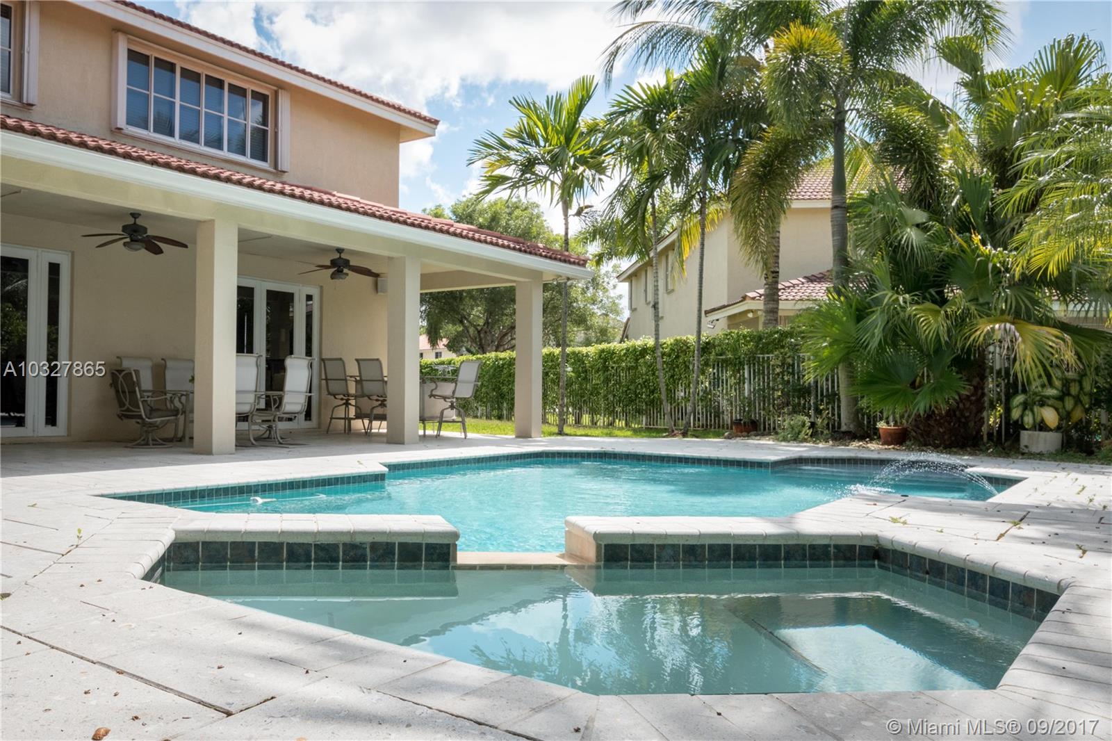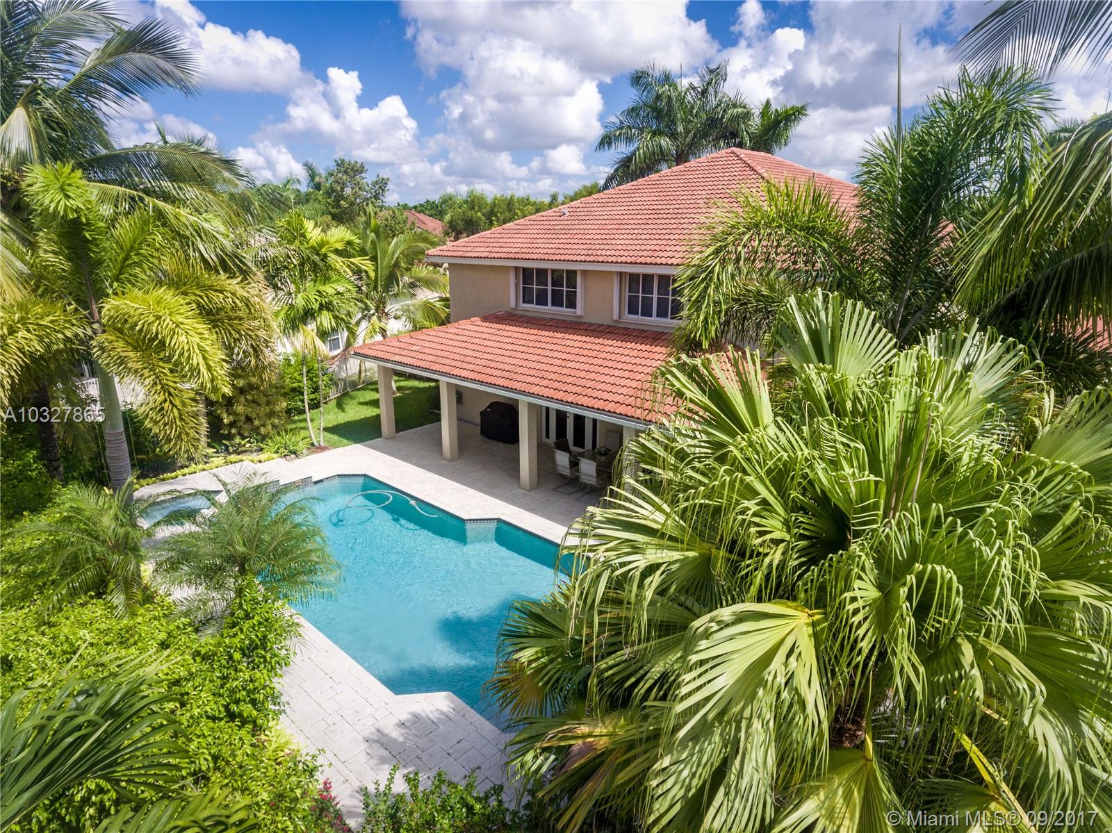 Fantastic curb appeal from this spacious Glendale model with oversized Newer pool, paver pool deck with fully fenced and privacy hedged and full overhang for sun coverage. Circular paver drive welcomes you home. Diagonal neutral tile throughout living areas with New grout seal and berber carpet on stairs and bedrooms. Grand master bedroom with ample closets, jacuzzi and bidet in master bath. Contemporary white kitchen with Brand New Stainless Steel appliances, back splash and countertops. Surround sound, Full accordion protection, Newer A/Cs, walk to community pool and park.