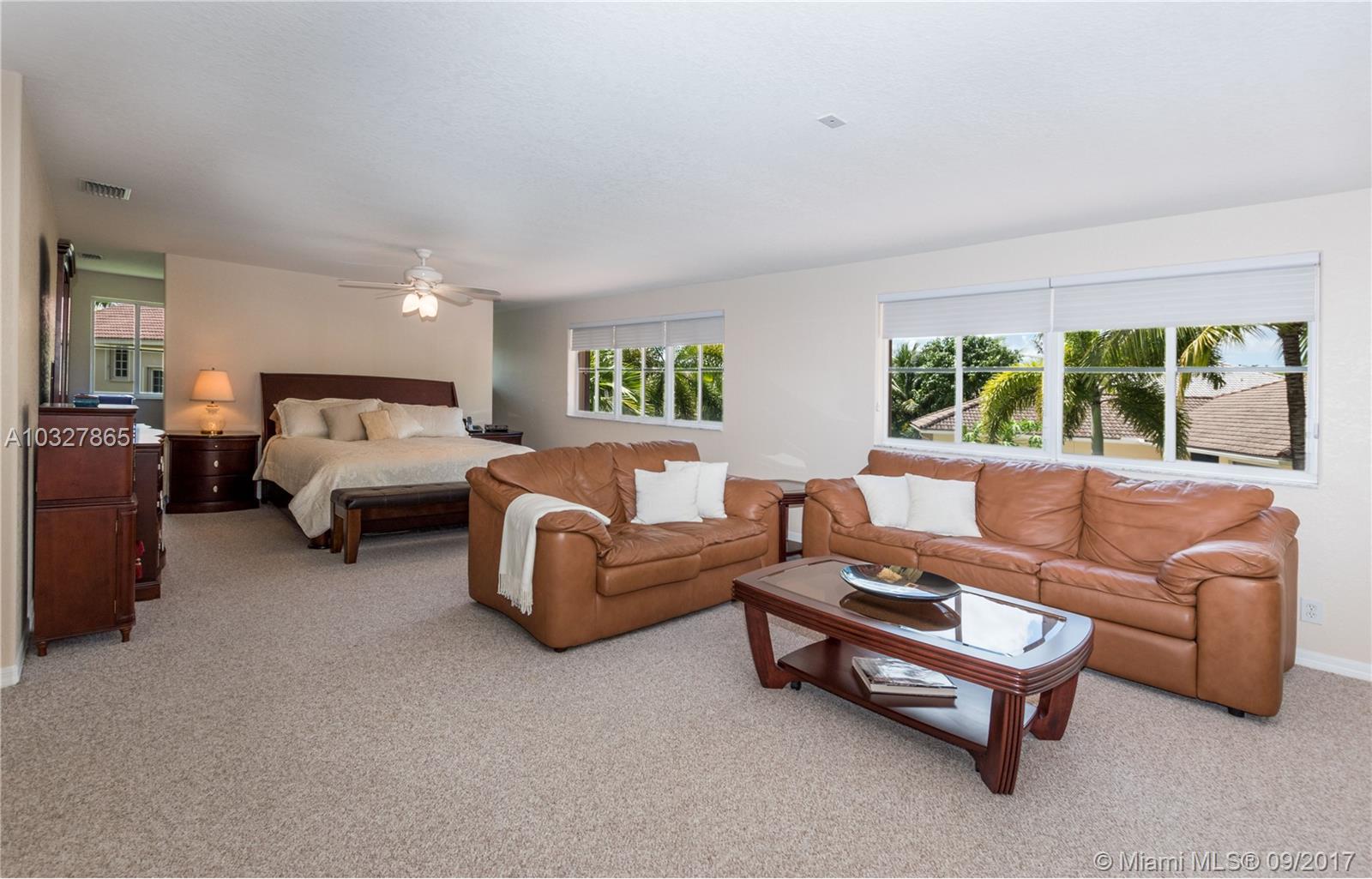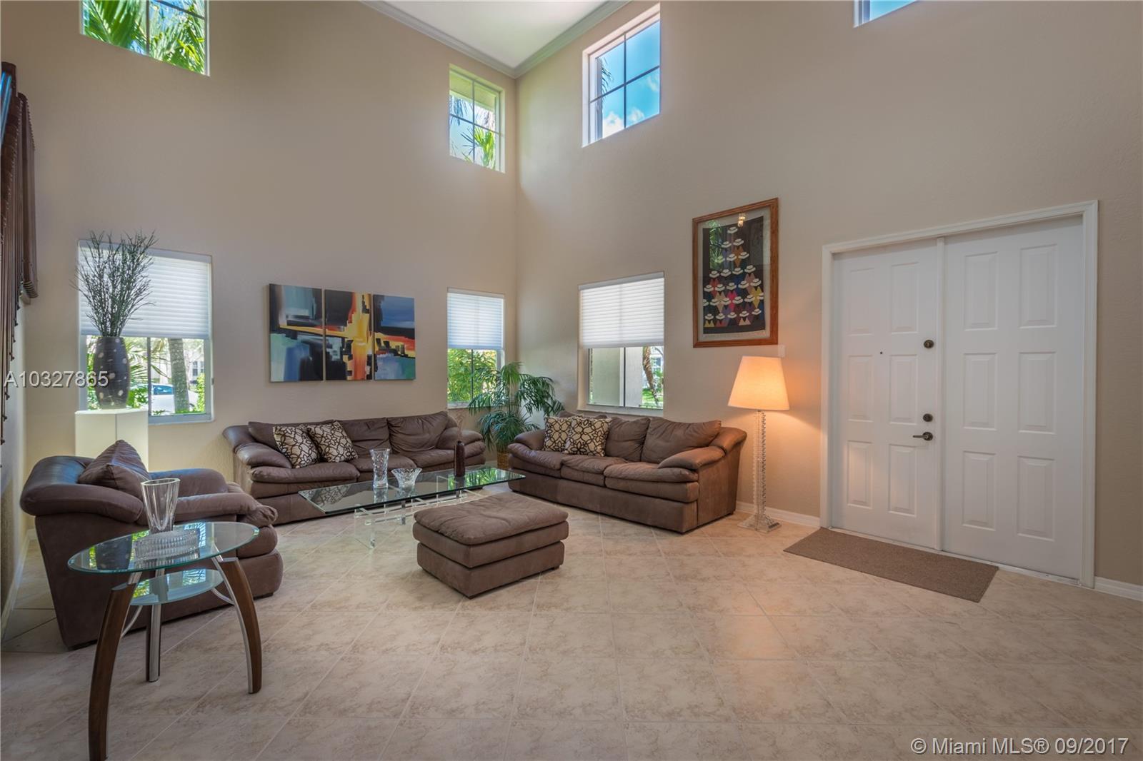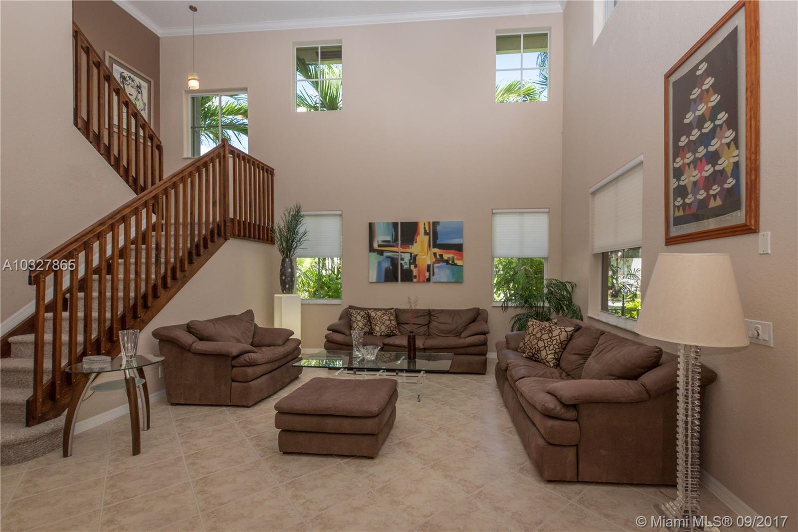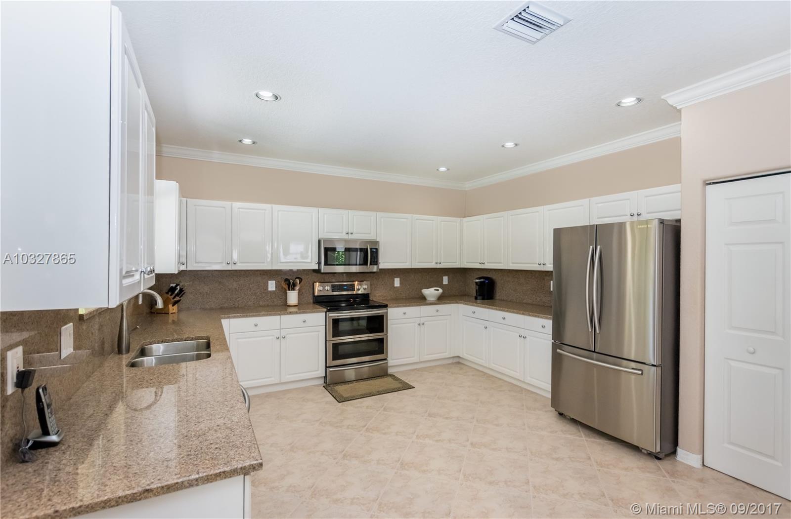 Fantastic curb appeal from this spacious Glendale model with oversized Newer pool, paver pool deck with fully fenced and privacy hedged and full overhang for sun coverage. Circular paver drive welcomes you home. Diagonal neutral tile throughout living areas with New grout seal and berber carpet on stairs and bedrooms. Grand master bedroom with ample closets, jacuzzi and bidet in master bath. Contemporary white kitchen with Brand New Stainless Steel appliances, back splash and countertops. Surround sound, Full accordion protection, Newer A/Cs, walk to community pool and park.
