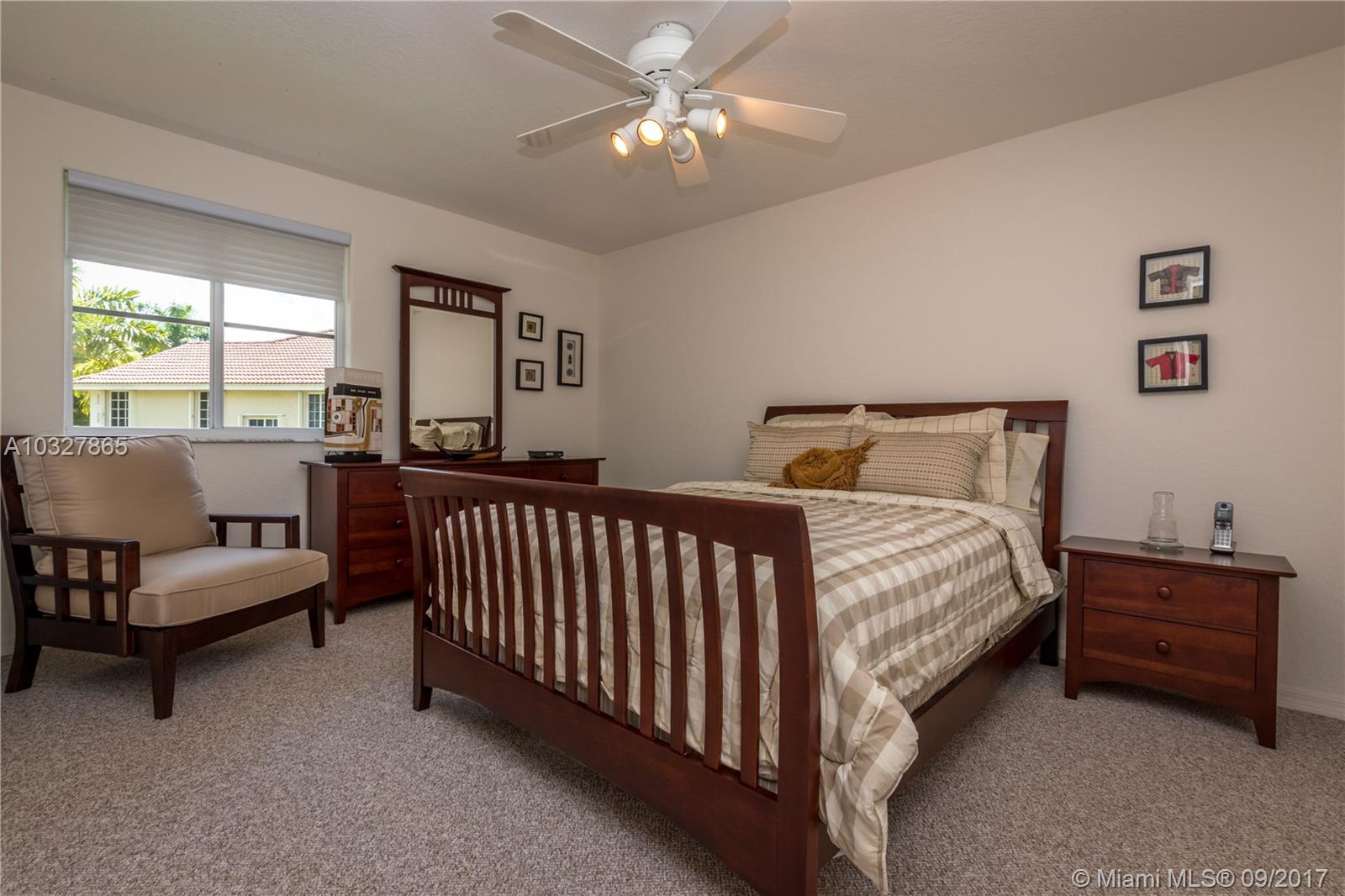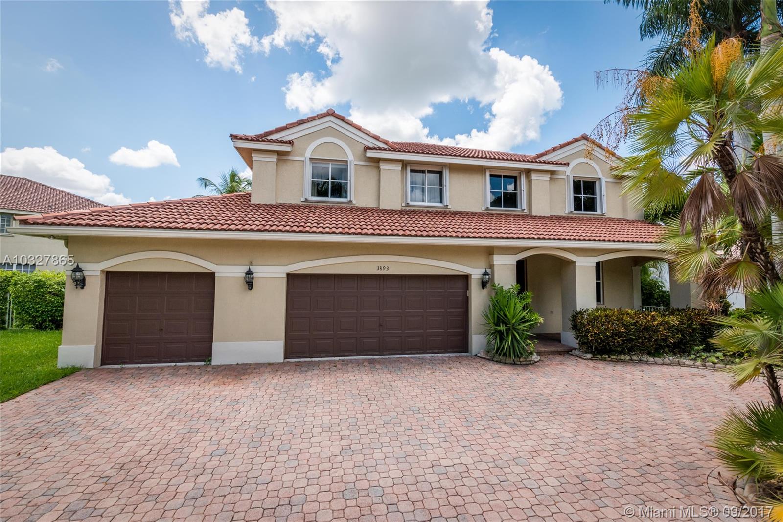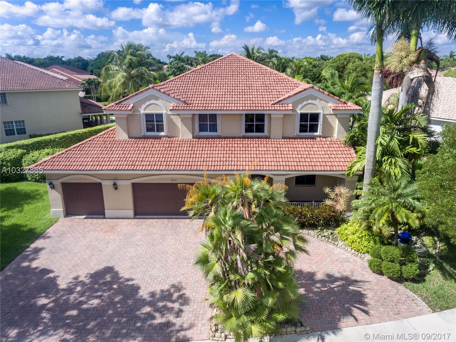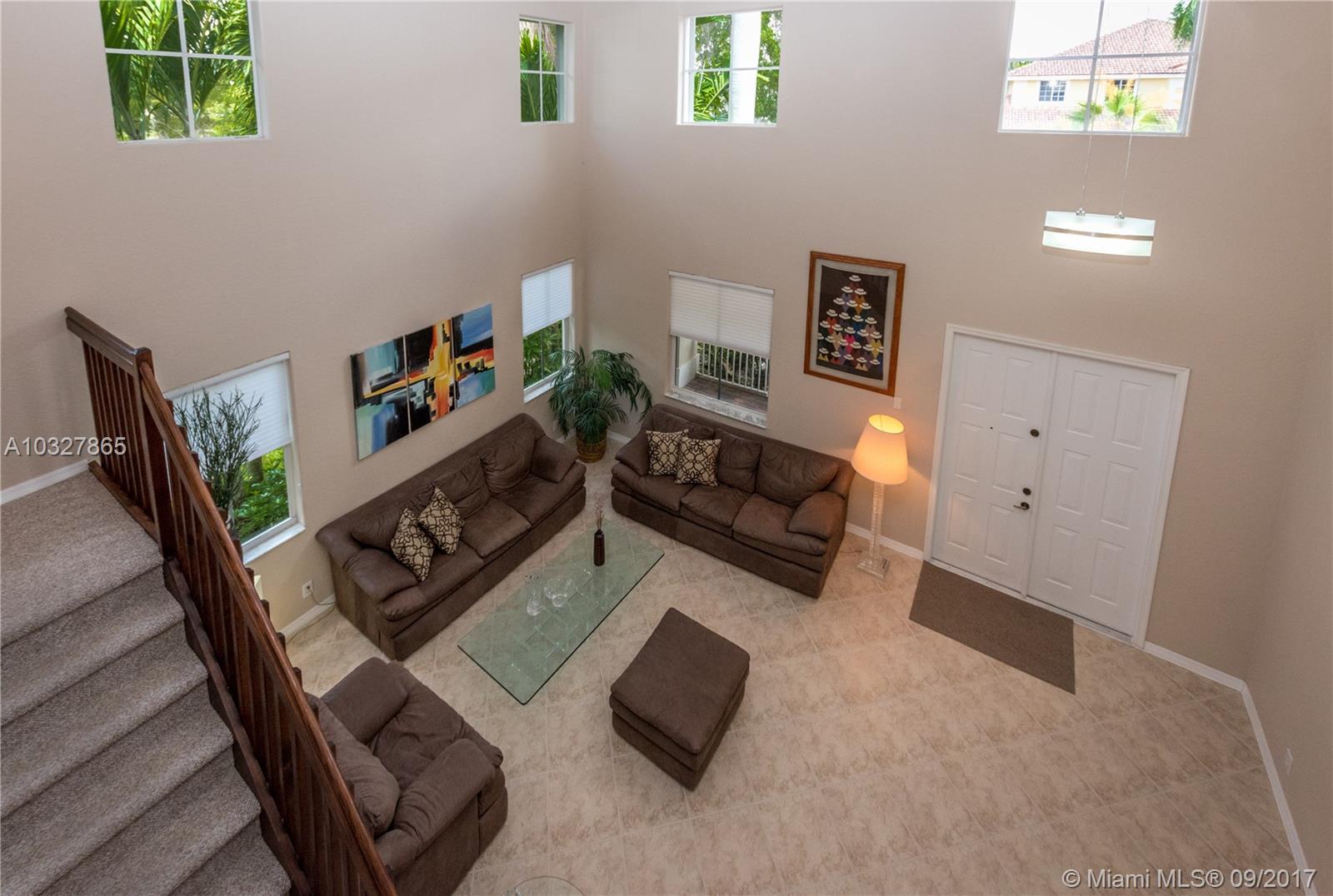 Fantastic curb appeal from this spacious Glendale model with oversized Newer pool, paver pool deck with fully fenced and privacy hedged and full overhang for sun coverage. Circular paver drive welcomes you home. Diagonal neutral tile throughout living areas with New grout seal and berber carpet on stairs and bedrooms. Grand master bedroom with ample closets, jacuzzi and bidet in master bath. Contemporary white kitchen with Brand New Stainless Steel appliances, back splash and countertops. Surround sound, Full accordion protection, Newer A/Cs, walk to community pool and park.