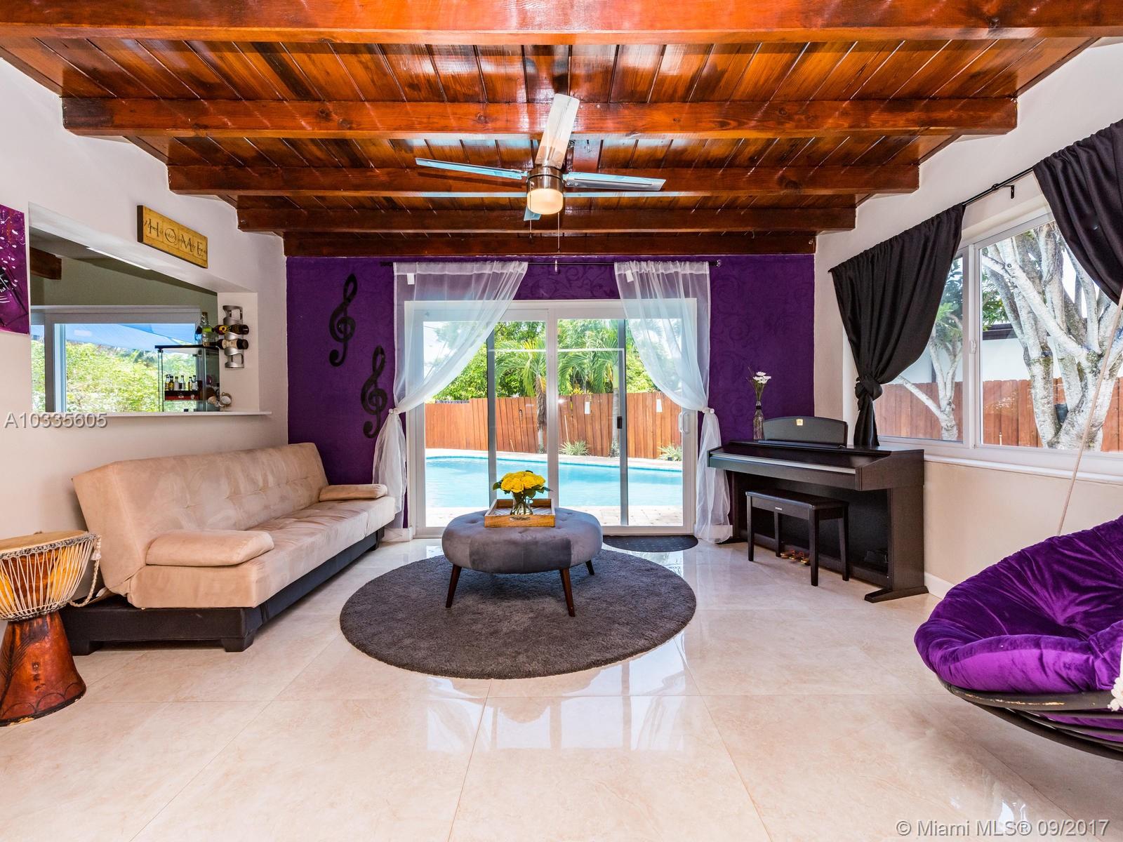 Gorgeous and captivating corner lot with large circular driveway (can fit 4-6 cars comfortably). Home is spacious and open. Features 4 bedrooms (split floor plan), 2.5 baths (with designated laundry space), office/workout room, large family room with fireplace, plus additional bonus space currently used as sitting/music room. Fenced in backyard with over-sized pool with new diamond brite finish. Backyard also features patio and wooden deck. Almost EVERYTHING renovated in 2015. New impact windows and doors. new flat roof, water heater, updated plumbing and electrical, renovated kitchen w/quartz counter-top, ALL new appliances still under warranty. 32x32 porcelain tile in living areas.This home is great for entertaining and enjoyment for large family. Best house on the block! Must see!
