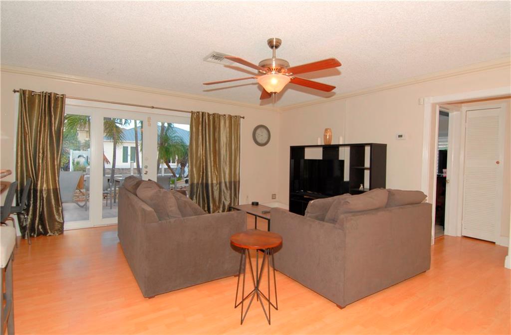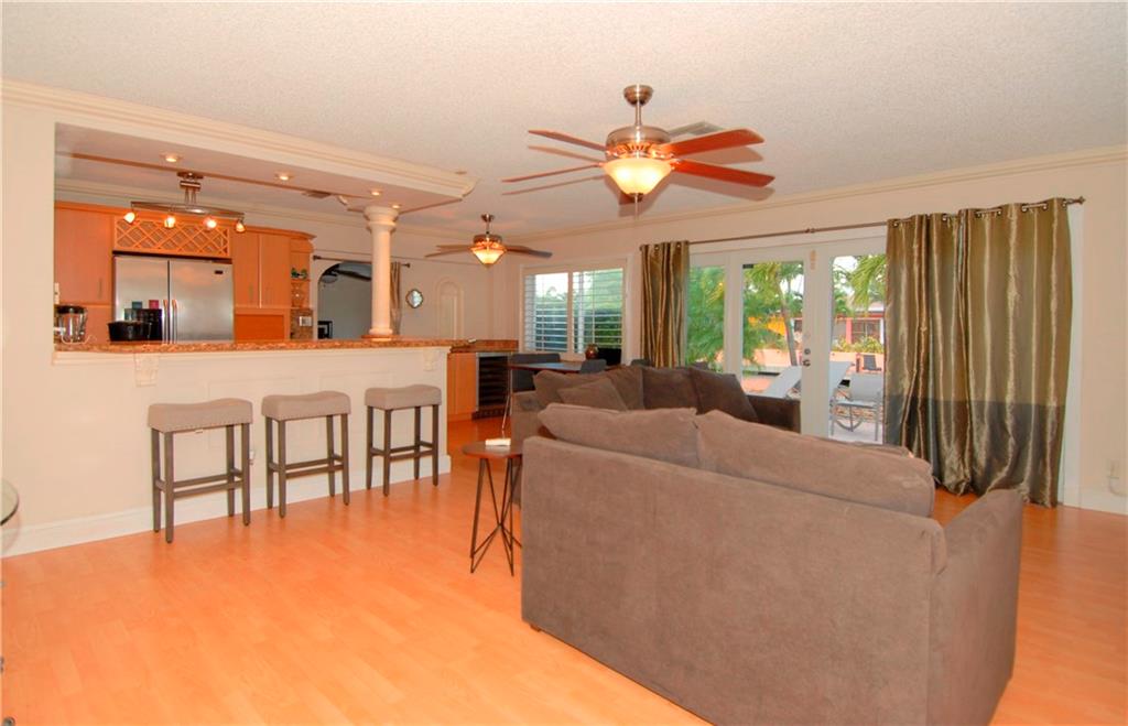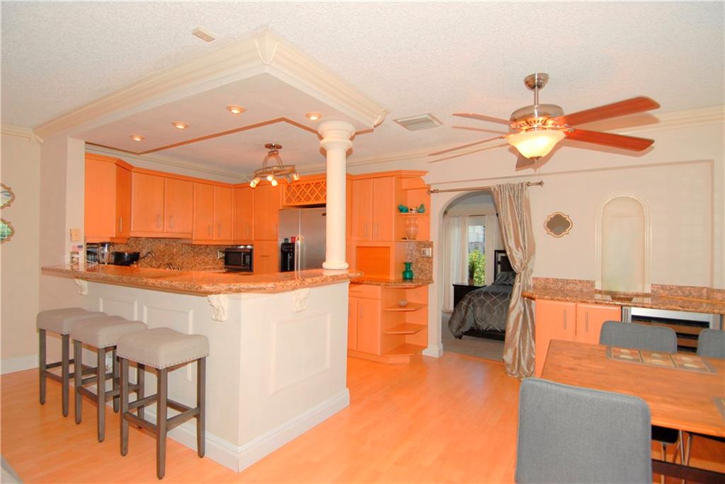 70 ft on deep water with a wading pool and great bar area, home has been updated, The garage has been converted into a 3rd bedroom or could be used as a office.
