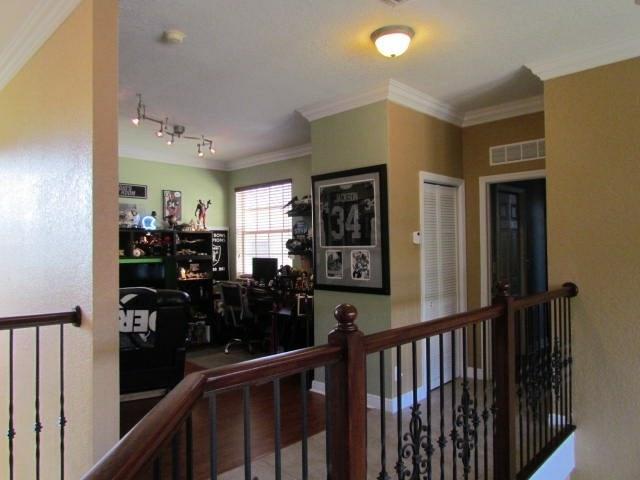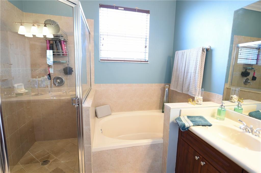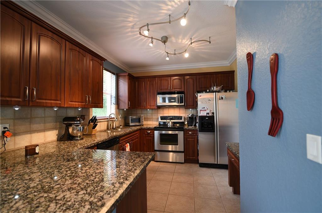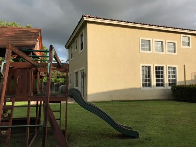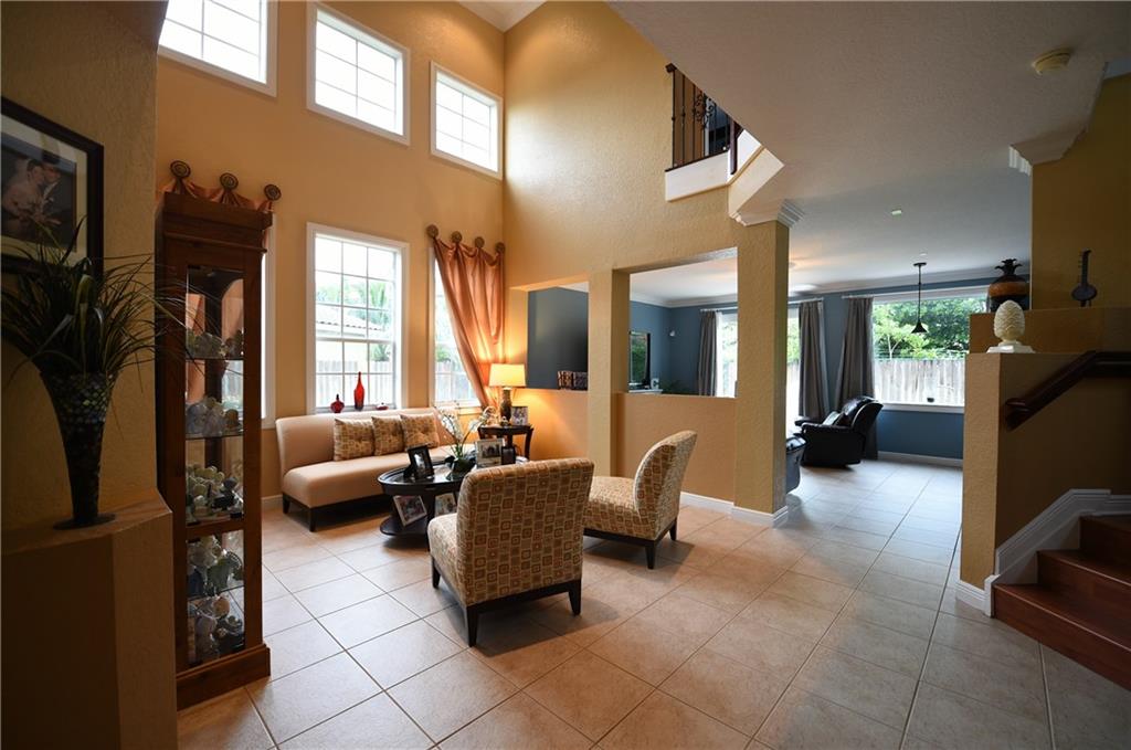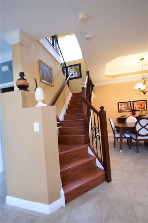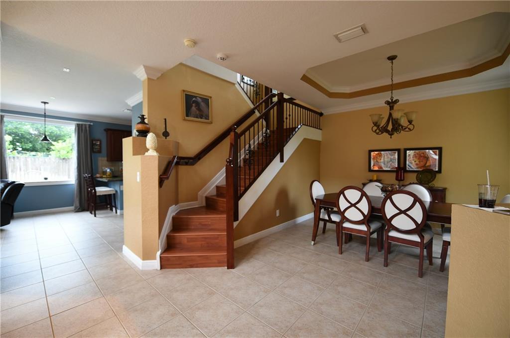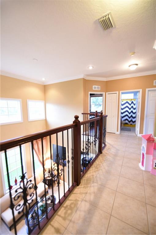 Move in ready 3 bedrooms (4th bedroom converted to loft), 2.5 bath on one of the largest lots in Escada. Tile floors throughout 1st floor and upstairs hallways. Laminate flooring on stairs and all bedrooms. Stainless steel appliances and granite counter tops in kitchen. Crown moulding throughout. Wrought iron railing on the stairs. Impact french door in rear. Lush landscaping, Extended driveway, Lake view. Gated community with 24-hour security and amenities.