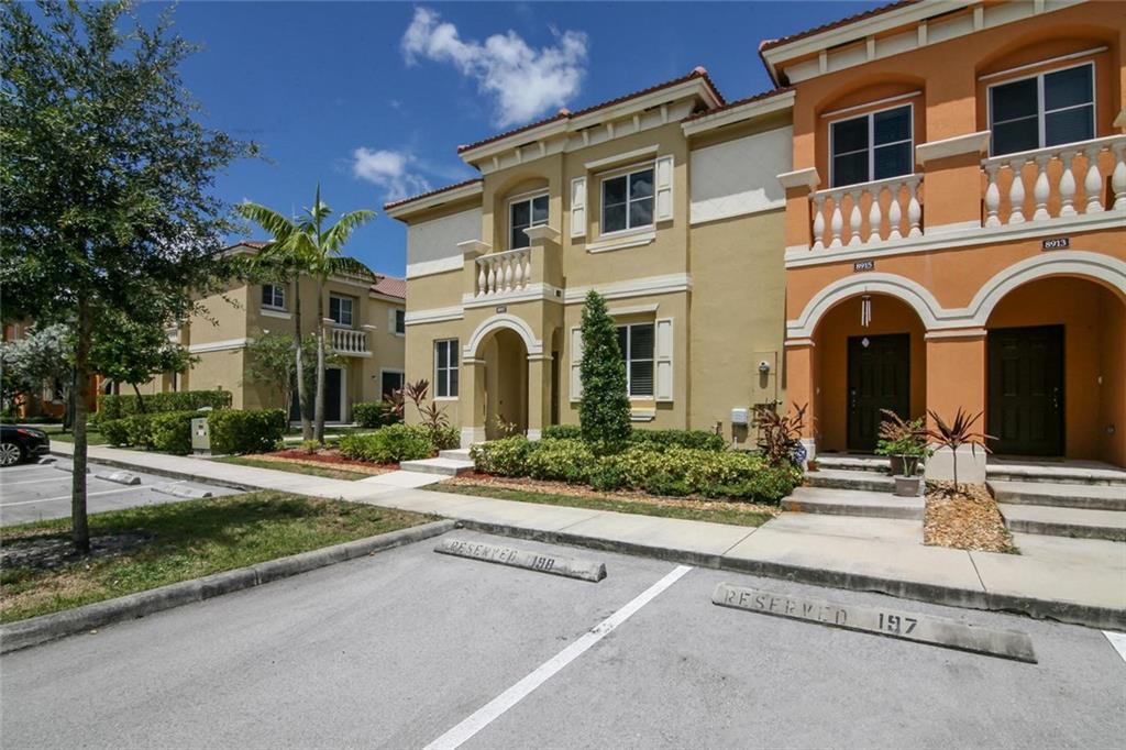 Gorgeous 3 bed 2.5 bath corner unit located in gated community of Village Walk! Built in 2014! Kitchen features wood cabinetry, granite countertops, and stainless steel appliances. Open floorplan with tons of natural light. Beautiful tile flooring on the first floor. Large bedrooms and closet space. Nice view as unit overlooks open green space. Community pool and playground area. 2 parking spaces. Panel hurricane shutters.
