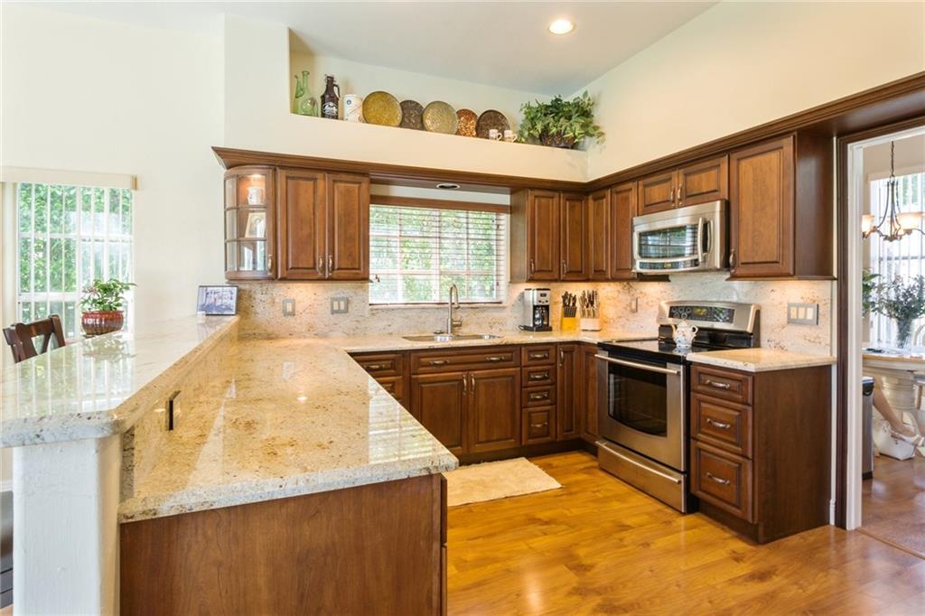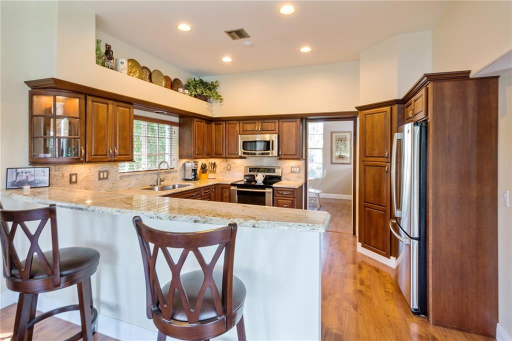 FROM THE MOMENT YOU ENTER YOU ARE GREETED BY SOARING CEILINGS AND NATURAL SUNLIGHT ABOUND. GORGEOUS LAKE VIEW WITH PRIVACY GALORE. THIS 3 BEDROOM 2 BATH HOME HAS BEEN REMODELED TO PERFECTION WITH UPGRADED LAMINATE FLOORING THROUGHOUT ALL THE AREAS DOWNSTAIRS. TOP OF THE LINE KITCHEN WITH GORGEOUS WOOD CABINETS & HIGH END GRANITE COUNTERTOPS, STAINLESS STEEL APPLIANCES & MUCH MORE! MASTER BEDROOM IS UPSTAIRS, PERFECT FOR PRIVACY & HAS ITS OWN PRIVATE BALCONY OVERLOOKING THE POOL & LAKE. SIMPLY SPECTACULAR.