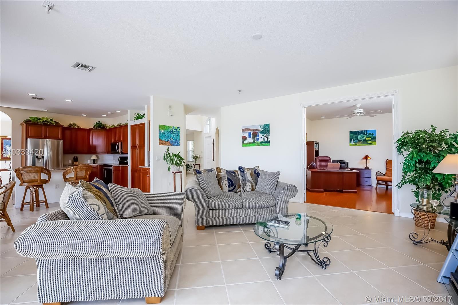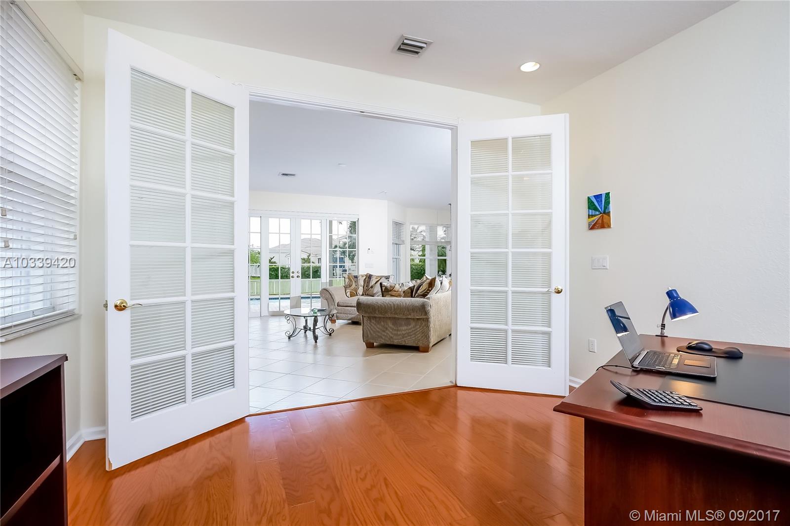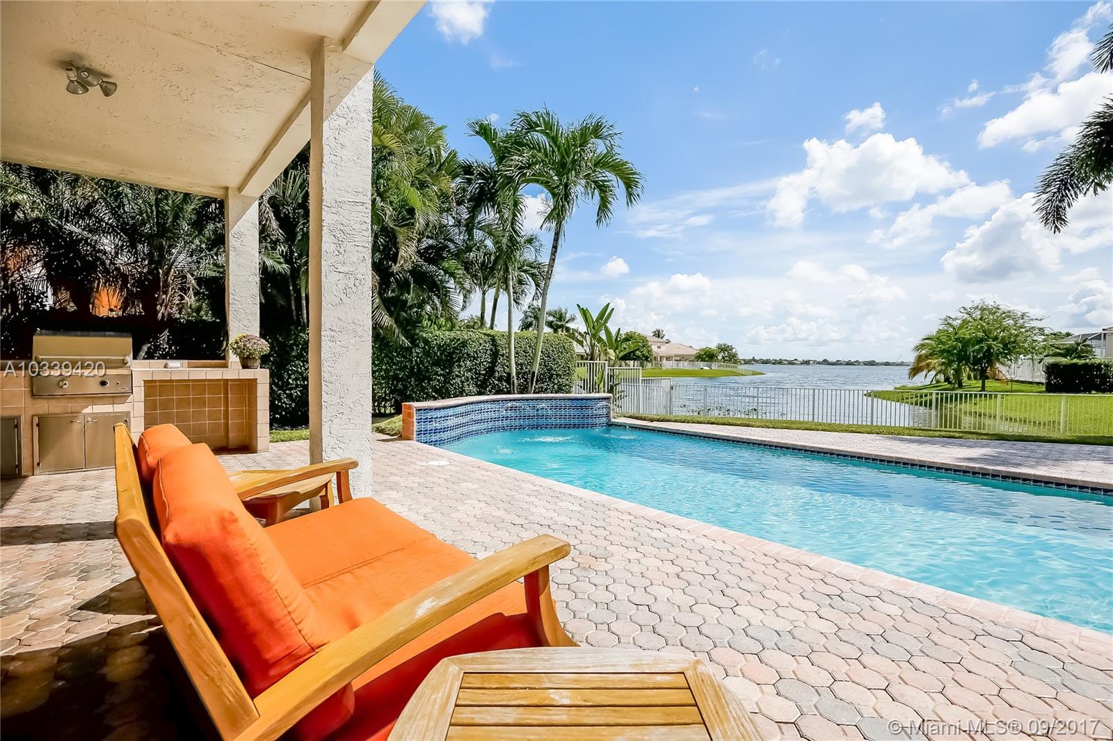 AMAZING WATERFRONT LIVING AT RIVIERA ISLES IN MIRAMAR. THIS BEAUTIFUL HOME HAS A LARGER LOT WITH A LAKEFRONT POOL IDEAL FOR FAMILY ENTERTAINING, INCLUDING A SUMMER KITCHEN, & A RAISED PATIO! THE VERY SPACIOUS FLOOR PLAN HAS 3652 SQ.FT, ORIGINALLY 5 BEDROOMS, WHERE ONE BEDROOM WAS ADDED TO THE MASTER SUITE FOR AN ART STUDIO, 3 FULL BATHROOMS, HURRICANE SHUTTERS & 3 CAR GARAGE. THE OPEN KITCHEN WITH ALL WATER VIEWS FEATURES WOOD CABINETS, GRANITE COUNTERTOPS, LARGE PANTRY, COOKING ISLAND & STAINLESS-STEEL APPLIANCES. ONE BEDROOM DOWNSTAIRS WAS TURNED INTO OFFICE WITH FRENCH DOORS. THIS HOME SHOWS PRIDE OF OWNERSHIP, THE ORIGINAL OWNERS HAVE KEPT THIS HOUSE IMMACULATE. GATED COMMUNITY WITH 24HRS SECURITY, CLUBHOUSE, FITNESS CENTER, CHILDREN’S PLAY AREA, TENNIS COURTS & COMMUNITY POOL.