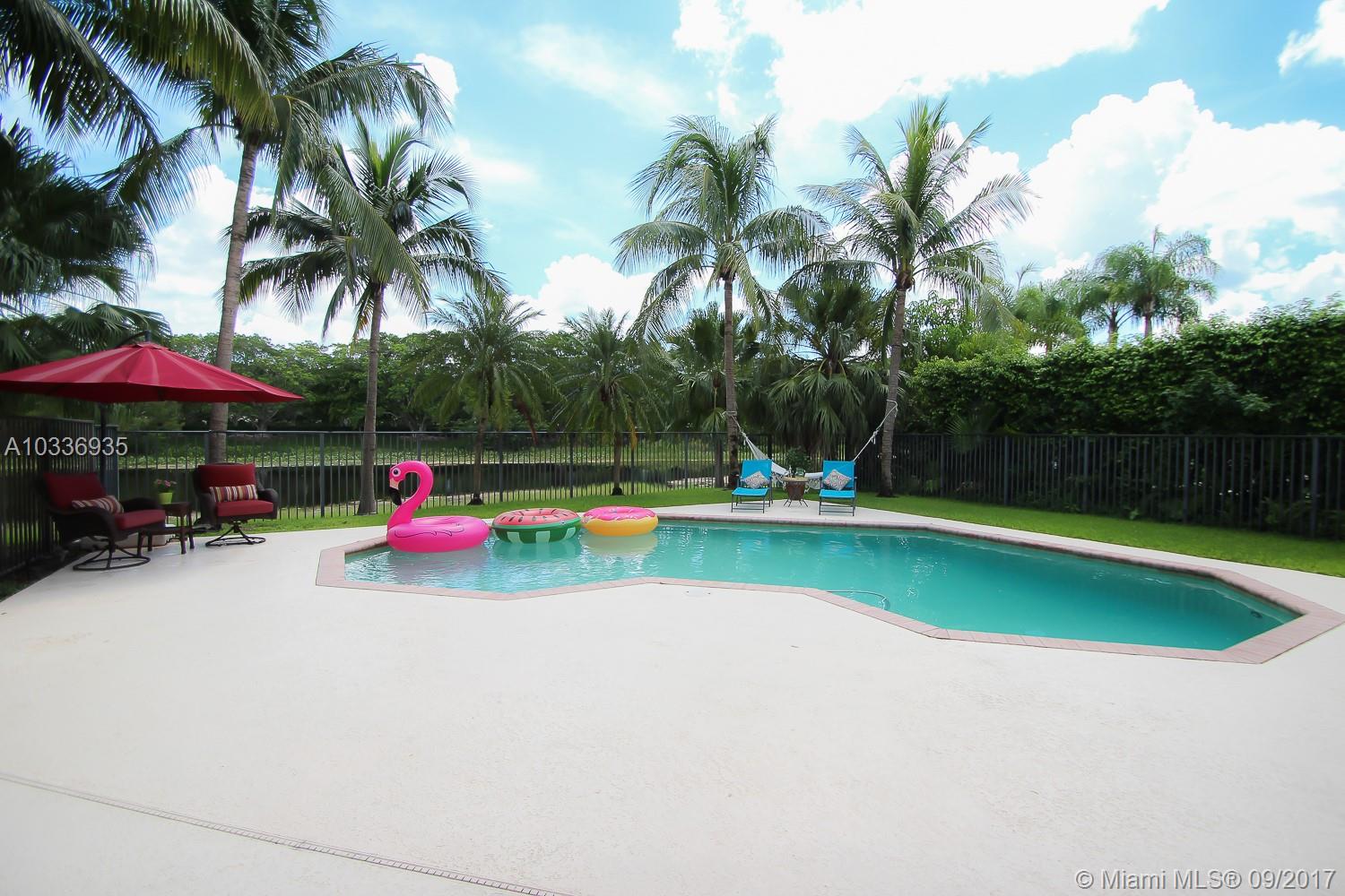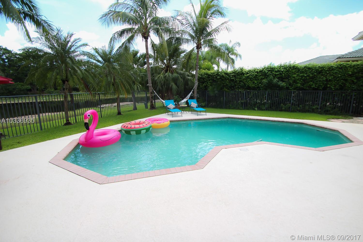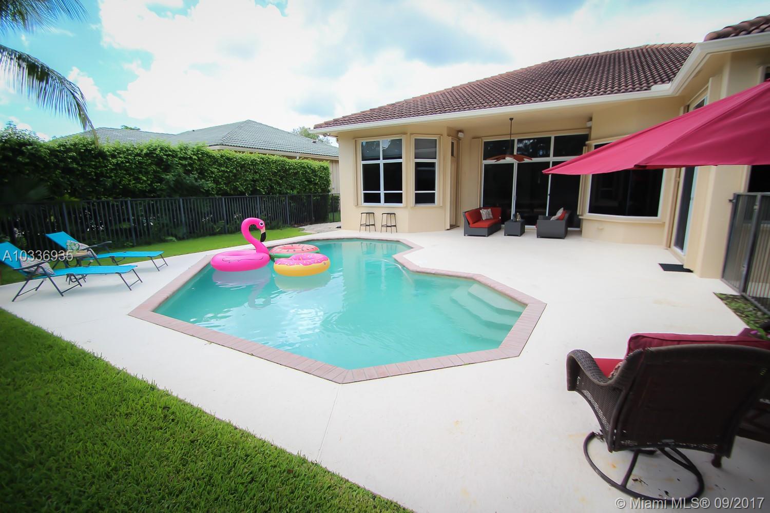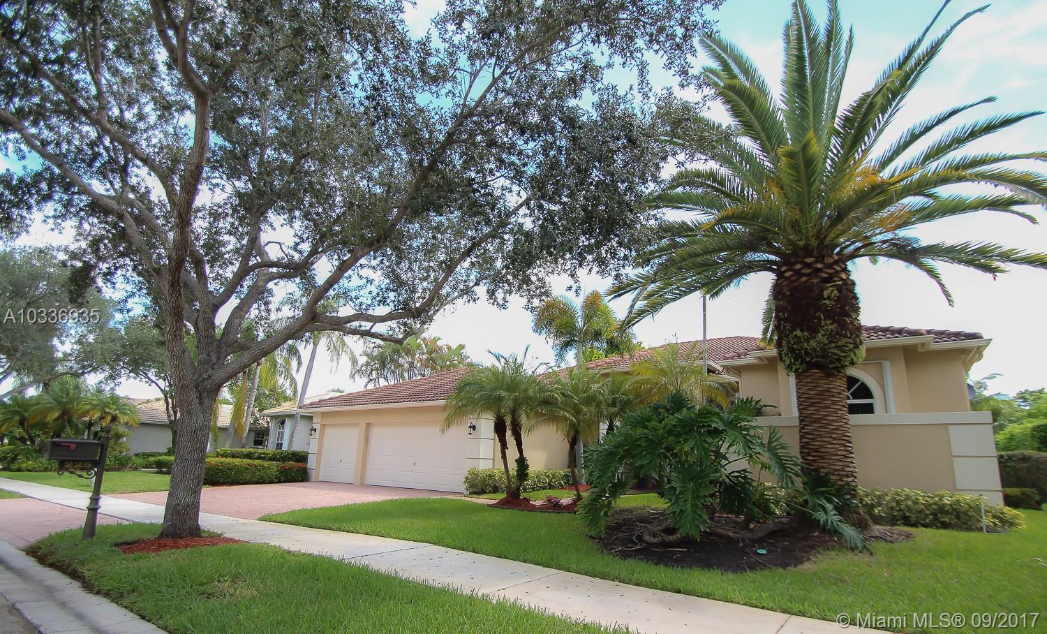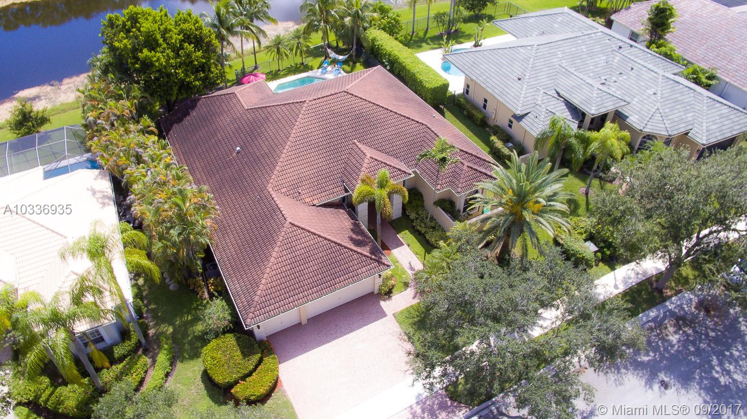 Located in the exclusive The Landings at Weston,we proudly offer this elegant Gem 4 bedroom,3 bathroom plus office, beautiful lake view & pool. In pristine conditions, this beauty receives you with an open volume ceiling main living & dining social space, looking at the inviting backyard where the free form pool is surrounded by a private fresh and green environment. All of it enhanced with an amazingly peaceful lake view that you can enjoy from almost every point of this house, your new home to be. Pretty kitchen with nice granite counter top, wooden cabinets 42" and SS appliances. Huge master bedroom with sitting area. All bedrooms have laminate floor. Accordion Shutters . A+ School ! This house is only waiting for you to be absolutely perfect.
