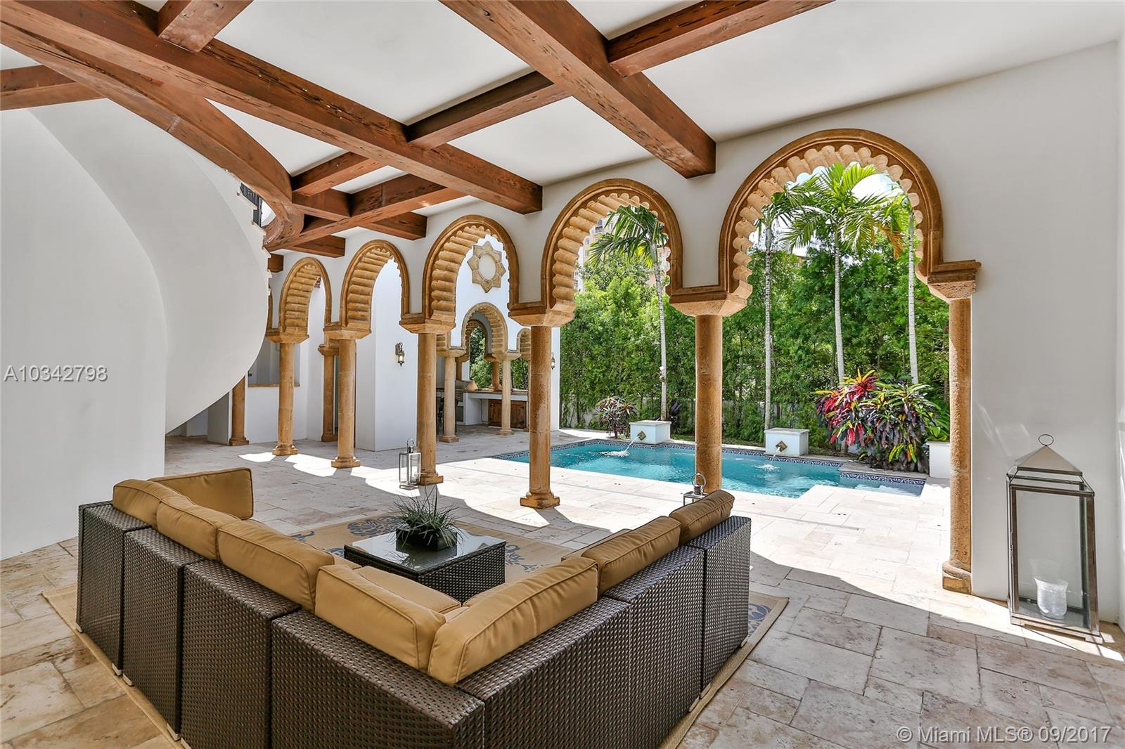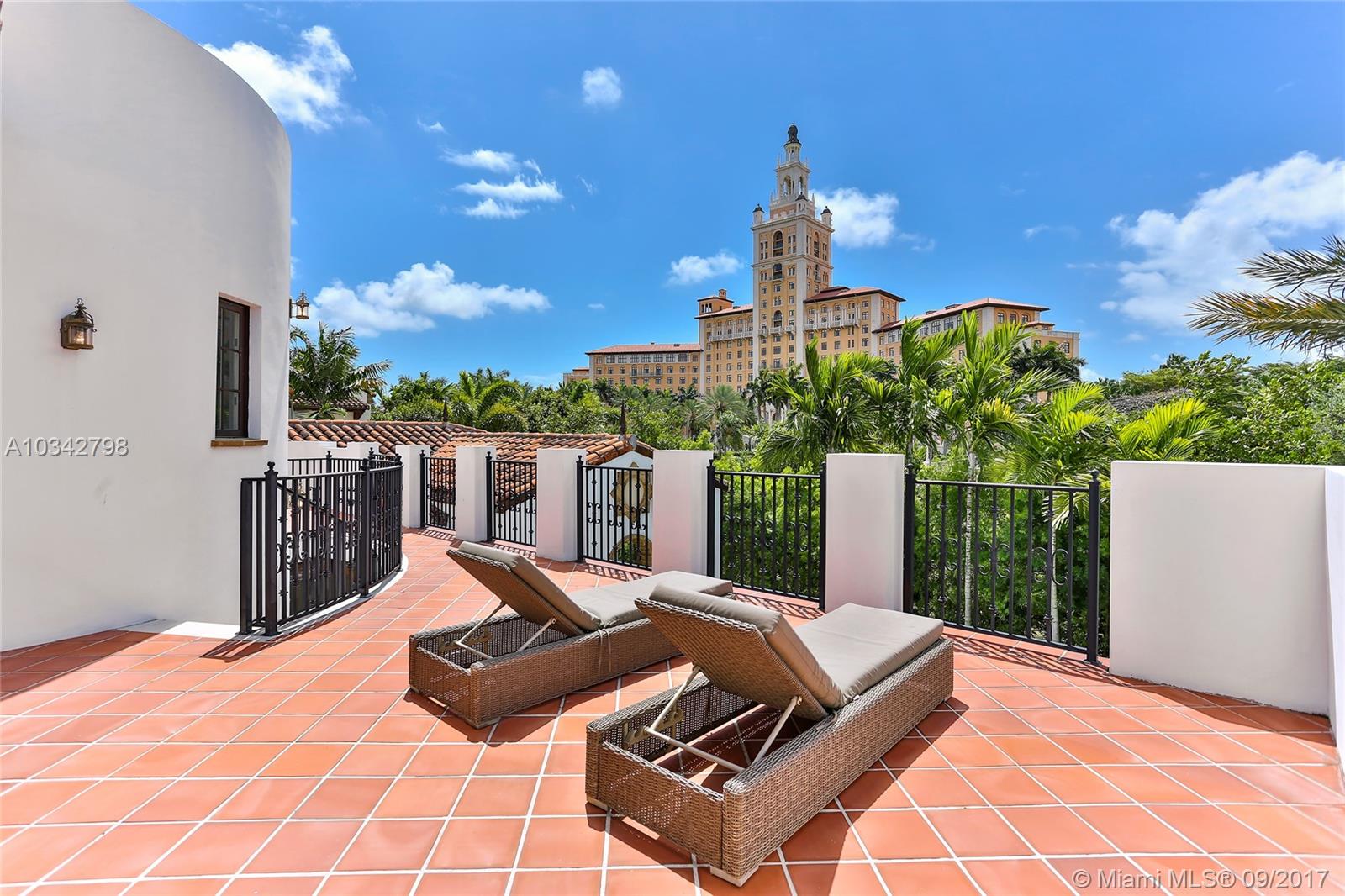 Truly special & unique Anadlusian Moorish-inspired home. Designed to suite the contemporary lifestyle while retaining old world details, some of which include handmade stonework & tiles imported from Morocco. Located across from the Biltmore hotel with a stellar view from the large second floor terrace. Featuring 2 private courtyards w/fountains, Marvin wood-clad impact glass windows & doors, covered loggias, in-law quarters, large den/office with vaulted ceiling, fireplace, elevator and much more!
