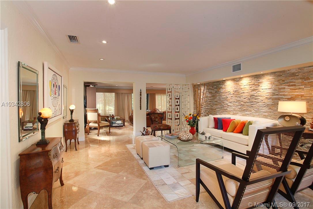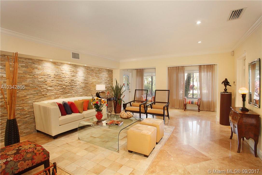 A beautiful gem! One story home with beautiful curb appeal. Absolutely charming 3 bed/3 bath home. Elegant reception area, dining and family overlooking pool & garden. Updated bathrooms, marble floors throughout. New kitchen with granite counters & backsplash. SS appliances. Pool with multi LED lights redone 2 yrs. ago. Built-in BBQ located in corner of garden. Covered pergola. Alarm, sprinkler system, mosquito control. Accordion shutters. 2 A/C units. Large storage. New grass in garden.