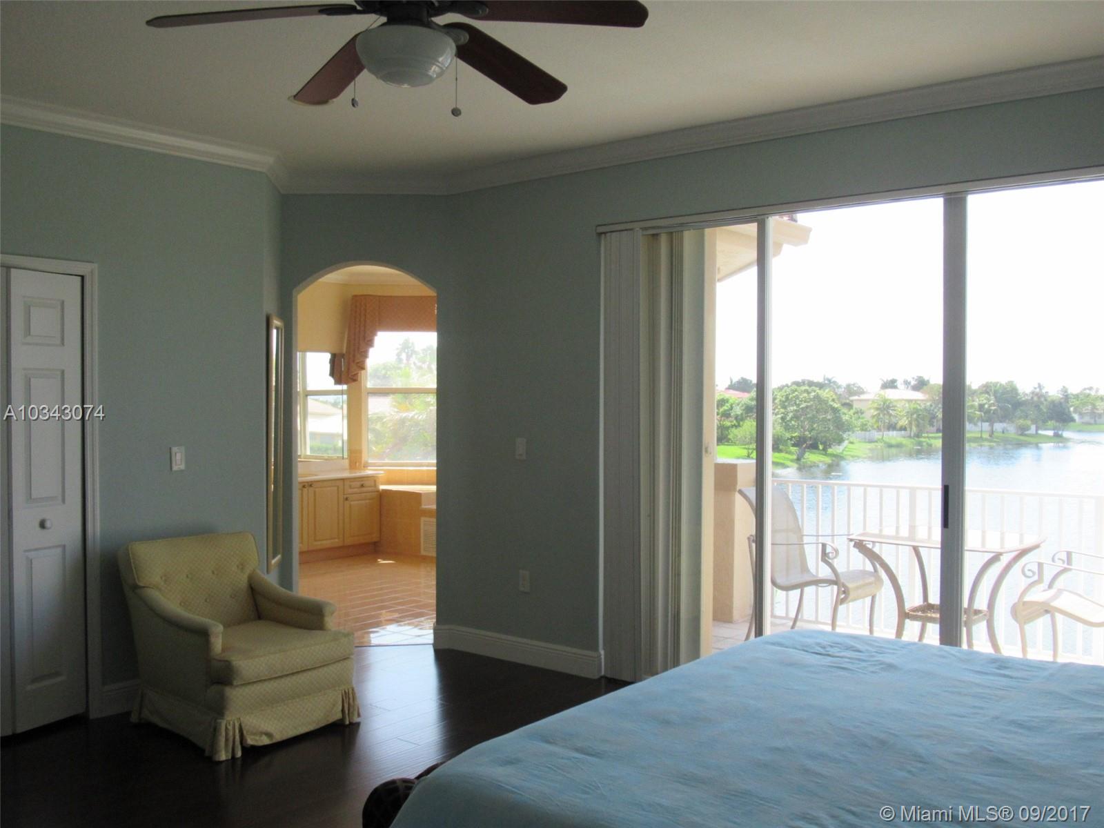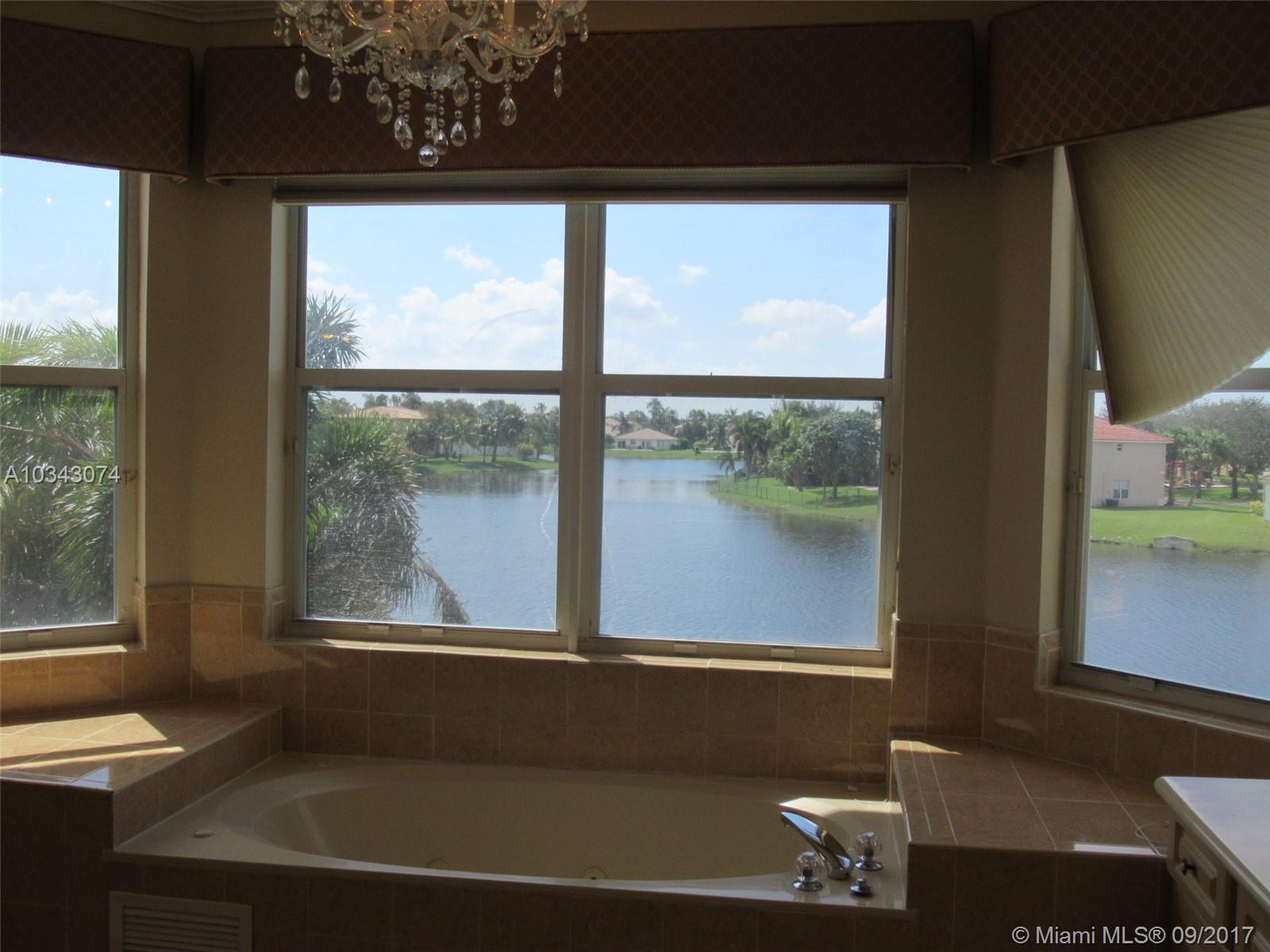 Spectacular view of the lake in this large 5/3 home in Monte Carlo Estates, a gated community. Exterior recently painted, double door entry, volume ceilings, spacious living, dining and family rooms, large kitchen with an island, breakfast area and stainless steel appliances. One bed/bath downstairs, covered patio leads out to the pool, 3 car garage, and the home has a mixture of accordion shutters and panels for hurricane protection. Ready for a new owner!