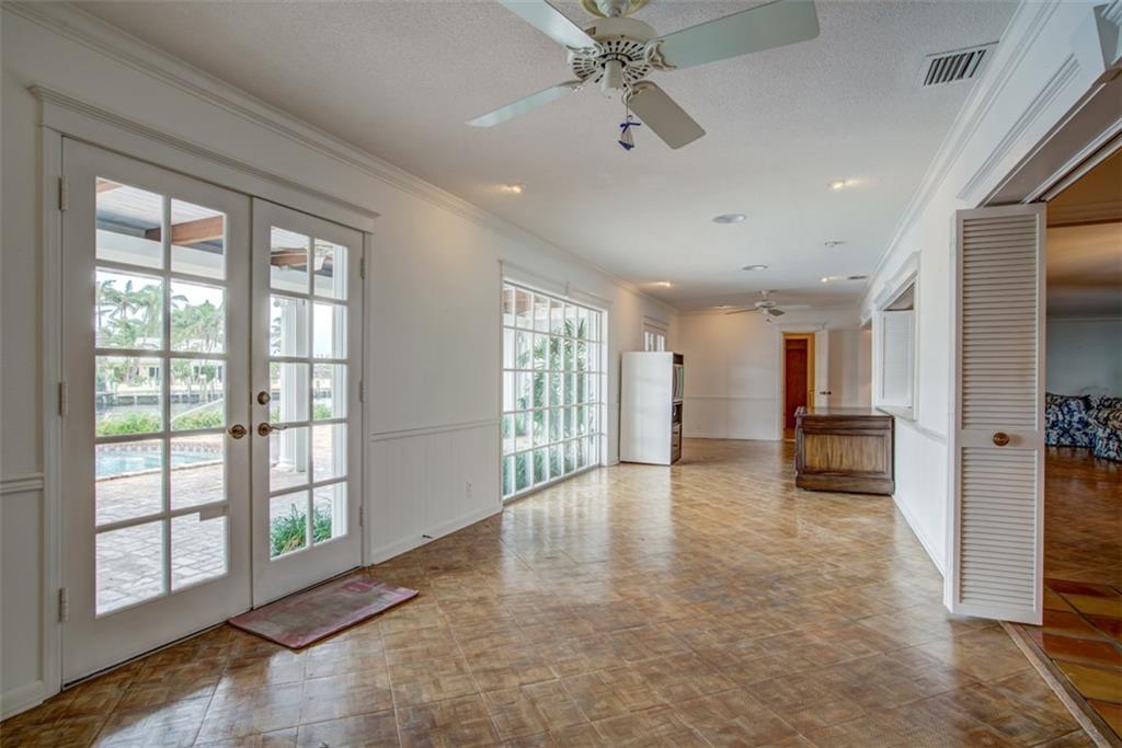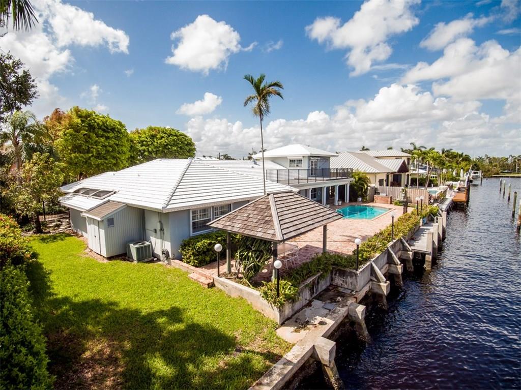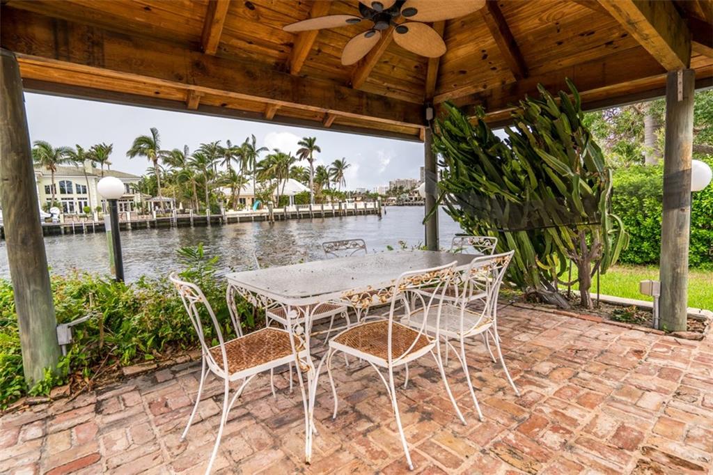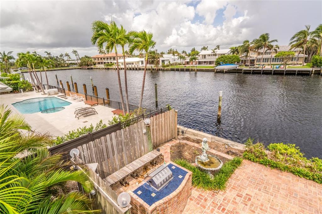 125 feet on the waterway. One house off the point. Open floor plan. Spacious kitchen w/white cabinets. Huge family room w/ fireplace. Separate guest suite w/ kitchenette. Back patio has Chicago bricks, summer kitchen, & Tiki hut. Gated front yard.