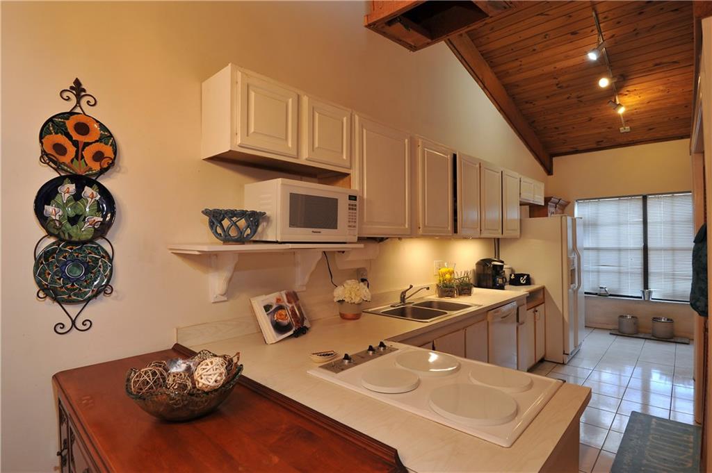 Price Reduced. Tamerlane TH featuring wood beamed volume ceilings, tiled flooring in living areas & master bedroom. Roof was replaced 2006. 3 way bedroom split: Loft is 3rd bedroom. Private fenced patio with Jacuzzi Tub & shed. Beautiful mature oak trees line the streets in this pet friendly community that has a pool, tennis courts & playground. Low HOA fee. Excellent location: walking distance to TY-Park, Starbucks, shopping & transportation! Come transform this into your beautiful home! Priced to sell.