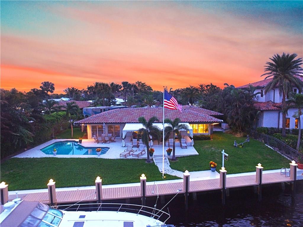 REDUCED $200K Motivated Seller! Remodeled Intracoastal pool home boost a light and bright modern flare. Situated on a 100ft of unobstructed Intracoastal waterways, mins to the Hillsboro Inlet in a no wake zone makes this the perfect location. From the fabulous gourmet kitchen & baths to the custom flooring even in the garage this home is one not to miss.! New roof, A/C & energy eff. water heater. Park your RV and several cars on your huge circular drive. Never lose power with your whole house generator!