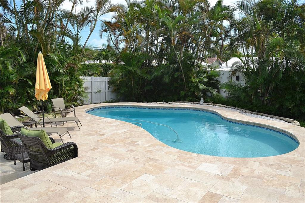 Great location and minutes to Beach in this Stunning Turnkey 3 bedroom plus office, 2 bath home with Spectacular Pool and Patio area. Owners spared no expense with brand new travertine deck with new custom screen enclosure with covered roof. Interior features updated kitchen with granite and stainless appliances, large neutral tile, new washer/dryer and decorator touches through out. Exterior features large circular drive, fenced yard, new pool finish & pool heater, newer roof, newer A/C, shed and more!