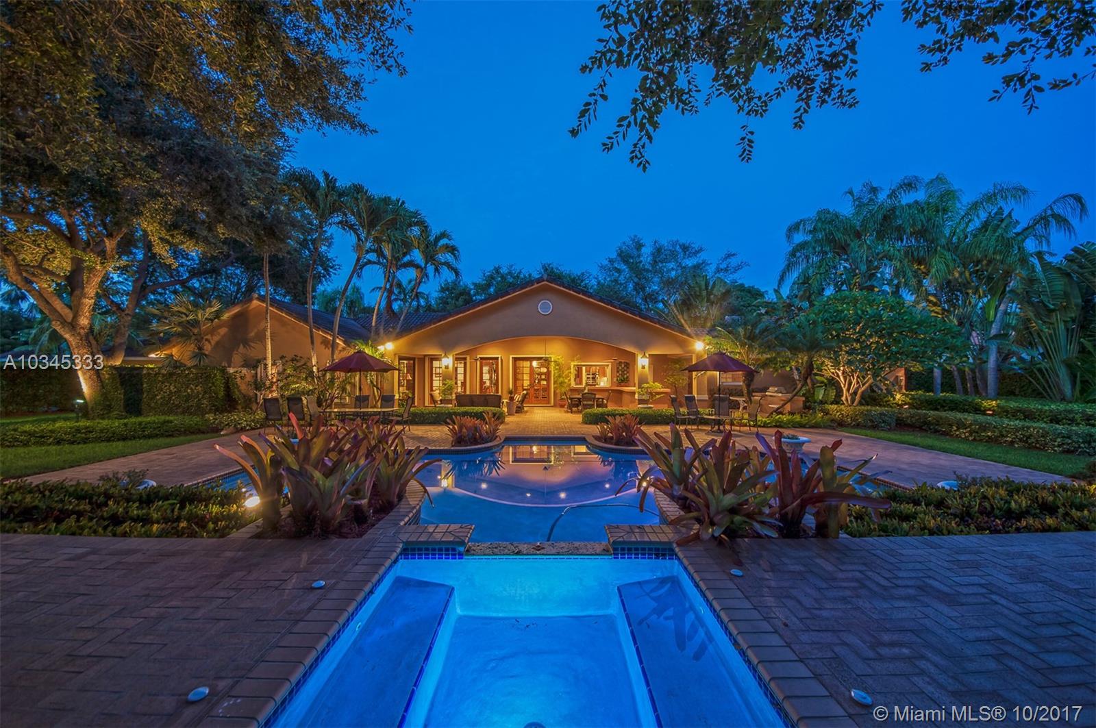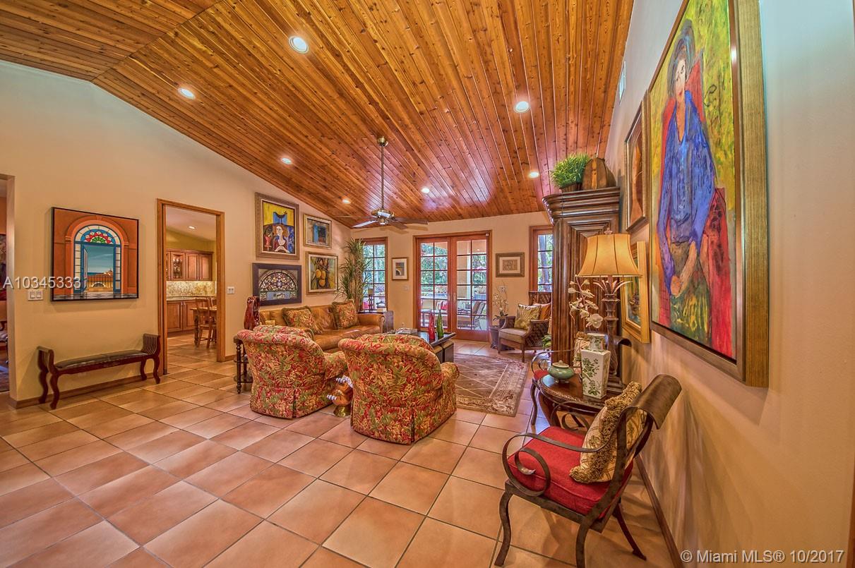 Hard to find expansive home in a small private community with an Old Cutler Road address. Renowned architect designed this meticulously maintained 5 bedroom, 4 bath home for current owner. Features include 10 and 12 foot wood ceilings, granite and wood kitchen, double sided fireplace, one split bedroom perfect for office or separate living, fantastic views from every room overlooking beautiful multilevel landscaped terrace with resort-like pool, Jacuzzi and grand oaks. X flood zone, all Palmetto Schools and Pinecrest Elementary. Come explore the opportunity to own in this enclave of only 4 properties.