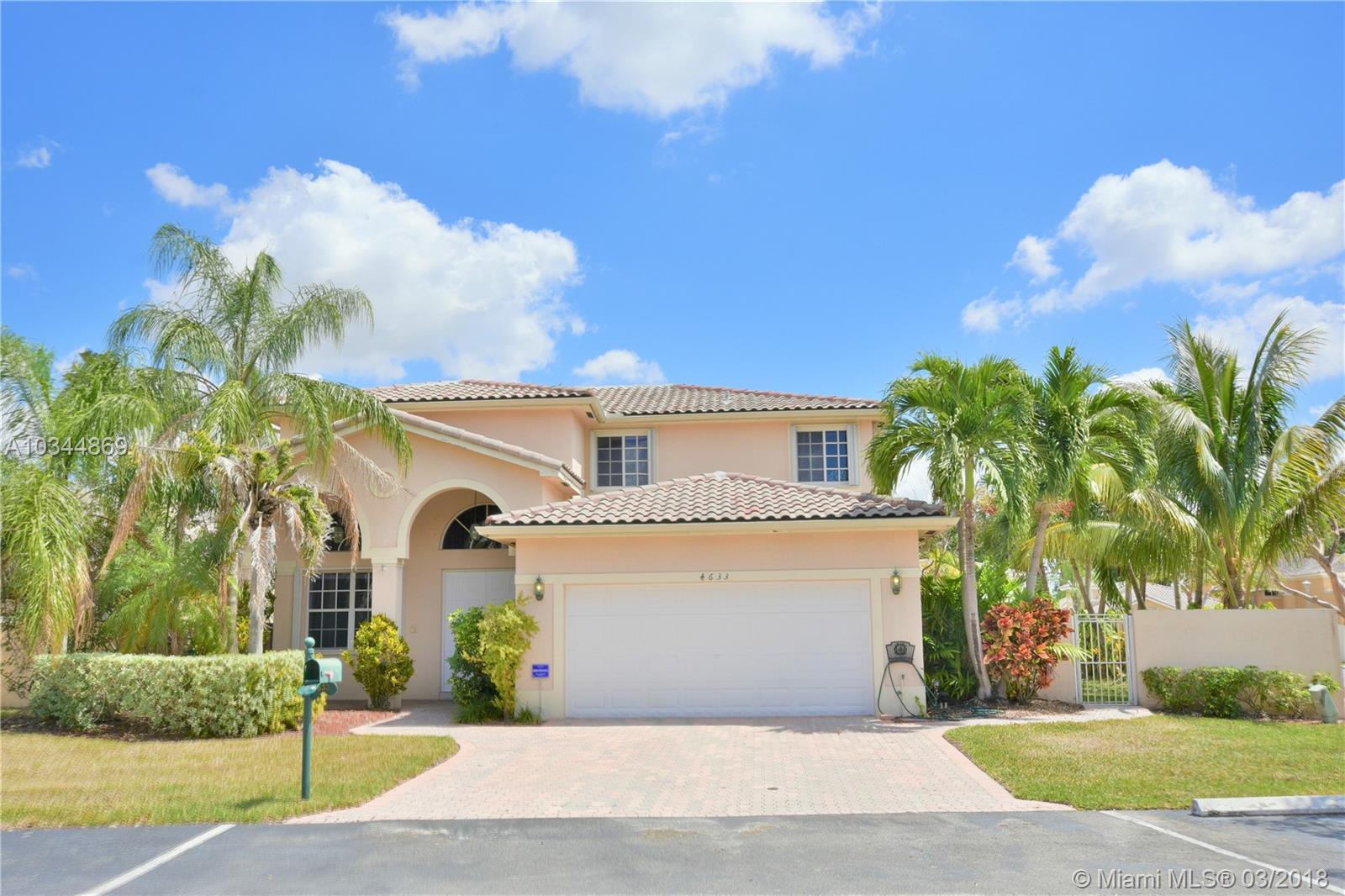 Elegant home located on a large Cul-de-Sac lot in the exclusive Gated Community of Goldvue Estates. Excellent central location in Doral. This 2 stories home features 3 bedrooms + DEN (EASILY CONVERTED INTO 4TH BEDROOM) 2 baths and a 1/2 bath on an oversized lot. Room for Pool. Wood Floor throughout the home. Kitchen features Granite counter top and Stainless Steel appliances. Spacious Family Room, Master suite with seating area, walk-in closet, Accordion Shutters. 2 cars garage, guest parking close to the property. Low HOA fees $235.00 a month include basic cable, alarm, and front lawn maintenance. Secure community w/ guard gated entrance 24 hours, Playground, and Pool Area**Seller Motivated**