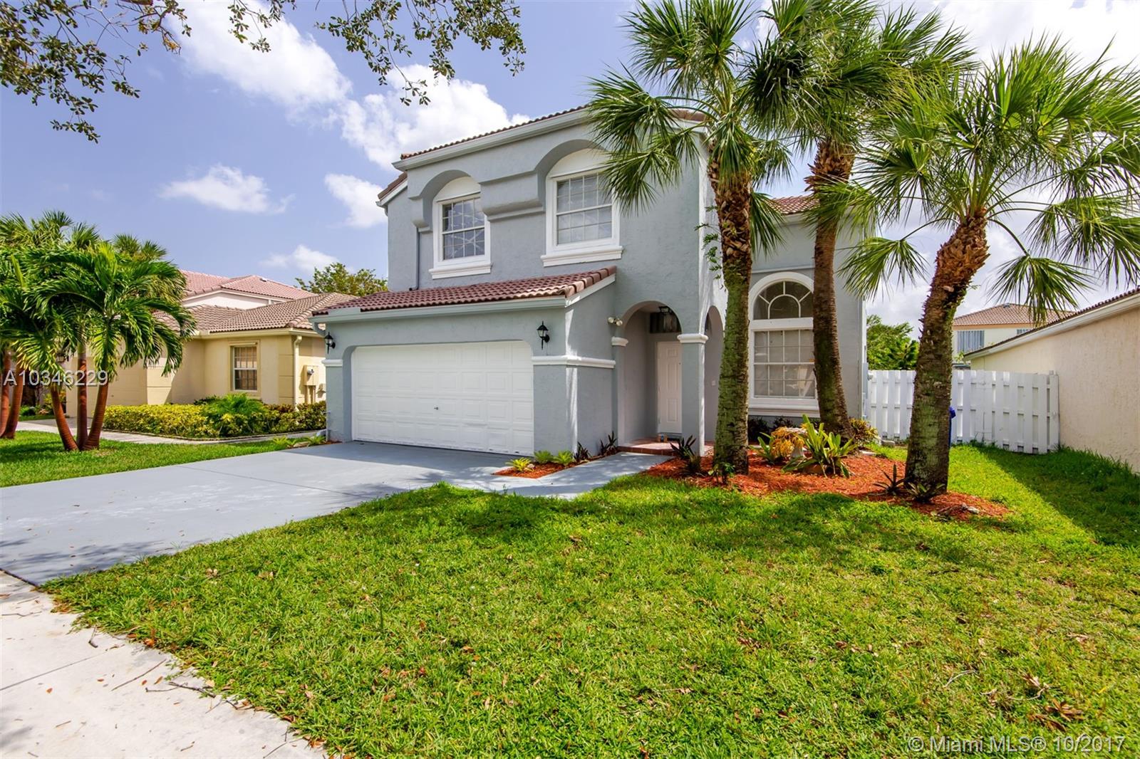 GREAT DEAL! Price REDUCED! Gorgeous 4 Bedrooms 2.5 baths Home with 2-Car Garage. GREAT LOCATION!! Enjoy this elegant modern complete remodeling, w Neutral colors, 24x24" porcelain floor tiles throughout plus dark expresso laminated flooring in bedrooms and stairwell. All wood, white color tall kitchen cabinets finished w a beautiful white & gray color QUARTZ counter top. Granite top vanities on bathrooms. Double sinks in both upstairs bathrooms. Home has ORIGINAL ROOF compliant to 1996 code. Home is located in the nice gated community of Cherry Bay, TOWNGATE. Near by I-75, Shopping centers, etc. Walk to A+ RATED Elementary schools. Fenced in back yard. Freshly painted interior & exterior in contemporary colors. Call or Text Diana for viewings.