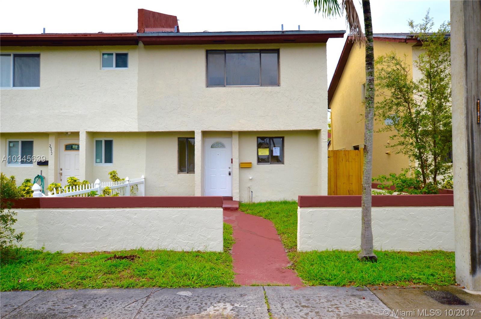 Great looking 2 bedroom, 2 bathroom twin home in North Miami Beach. Great layout, very spacious, ample closet space, washer/dryer hookup, and fenced backyard. It is minutes away from US-1, I-95, beaches, and Aventura Mall. This house is perfect for any family. Schedule your showing today!