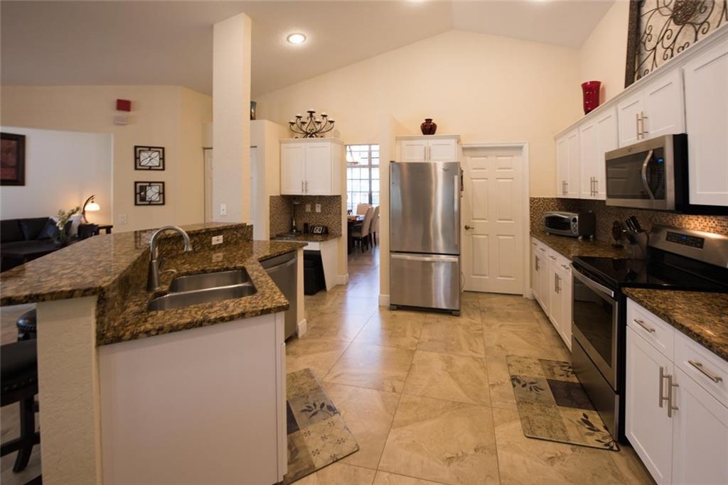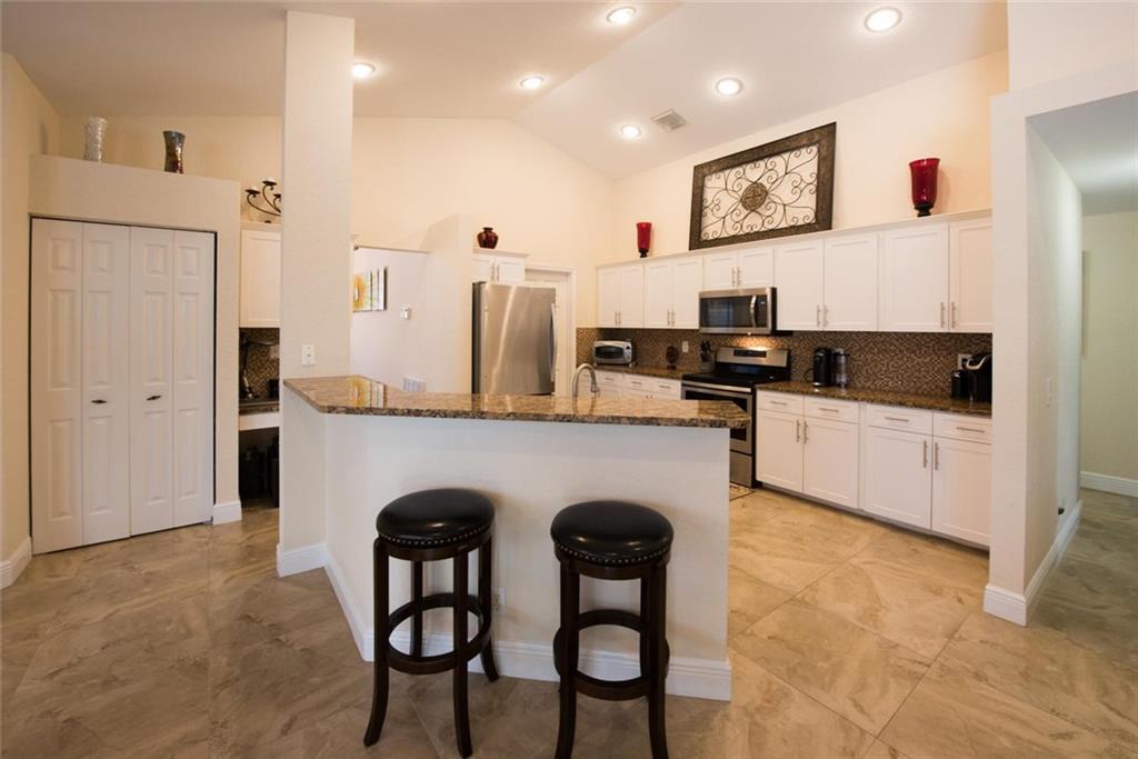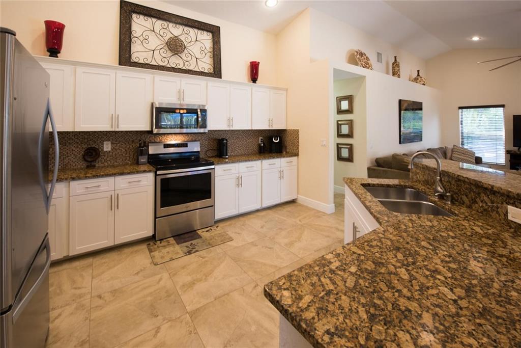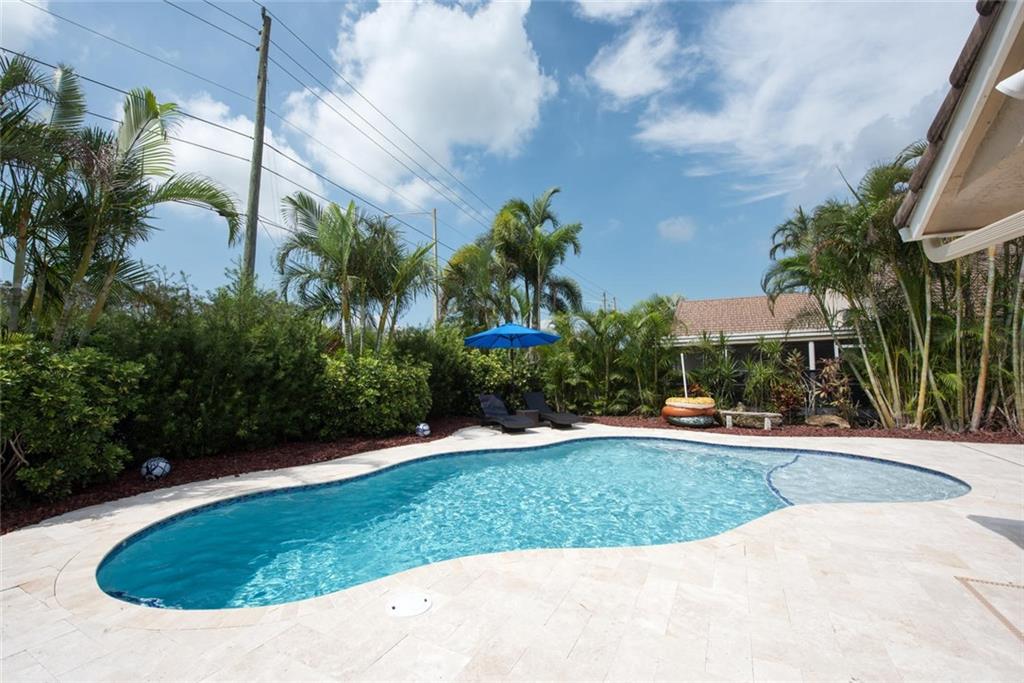Bring your most discriminating buyers here. Completely renovated 3-2-1 SALT WATER FREE FORM POOL 2017. Expanded circular drive and patio W/PAVERS Sprinkler system, bordered landscape beds and lava rocked paths recently completed. Impact front door entry, freshly painted in and out. New flooring and baseboards Beautiful open kitchen granite and new SS appliances including W&D- features include walk in closets/organizers-high profile commodes- accordion shutters-laundry tub-pull down attic AC 2009