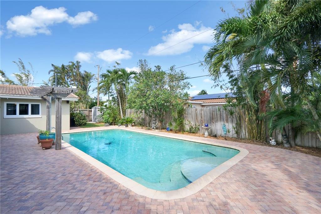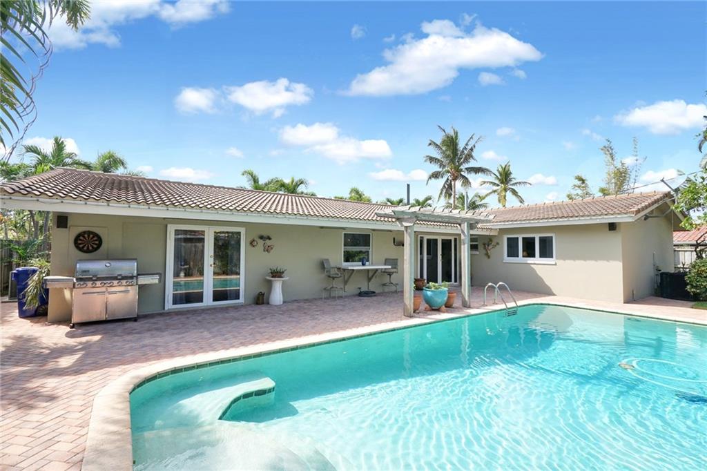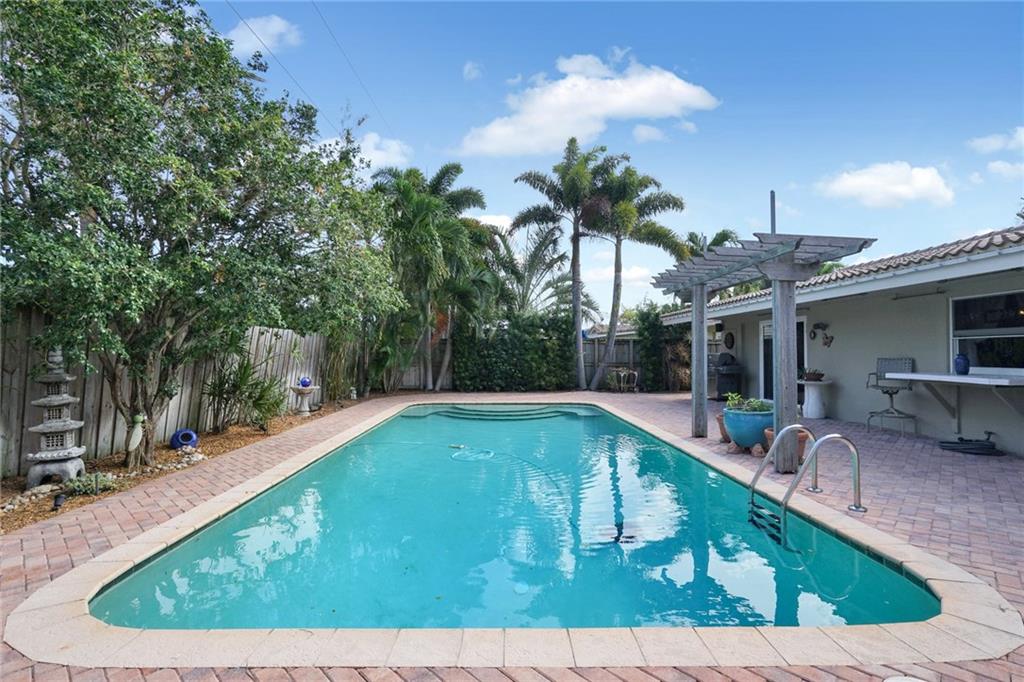 Charming three bedroom two and a half bath home in the heart of Coral Ridge. Features include light and bright floorplan, open kitchen with wood cabinetry and stainless steel appliances, nice size bedrooms, large laundry room with storage, two car garage and more! Huge fenced in backyard with pool, pavered patio and lush landscaping. Roof 2008. Close to schools, shopping, dining and Fort Lauderdale beach. This home is a must see!