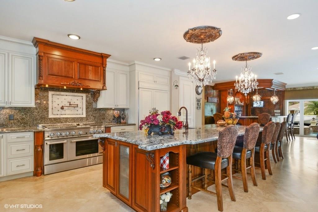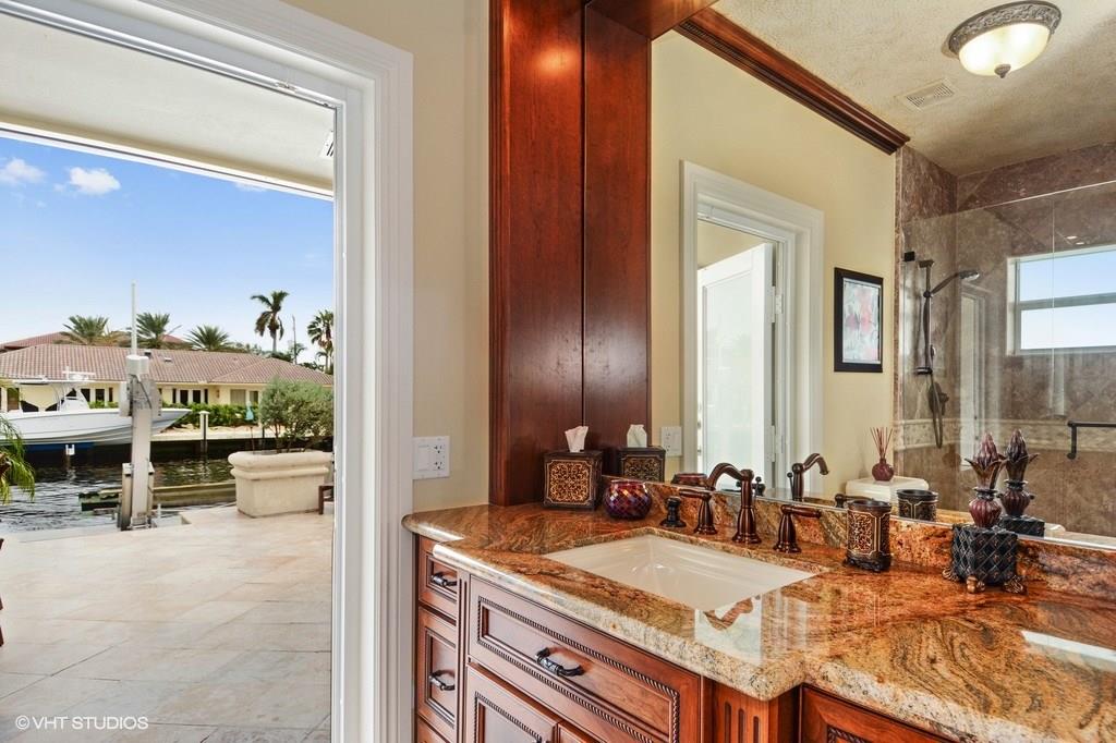 Absolutely stunning renovation with the emphasis on quality! Approx $700,000 spent within the last few years to make this residence a perfect 10! Rich marble flooring throughout, amazing gourmet kitchen w/ over-sized granite counter, high-end appliances w/ 6-burner Jenn-Aire gas stove. Spacious master bed w/ his/hers walk-in custom closets, sumptuous bath w/ double vanities, soaking tub & glass enclosed shower. Gas heated pool/spa w/ fountains, 100 ft concrete dock & just three lots from the Intracoastal!