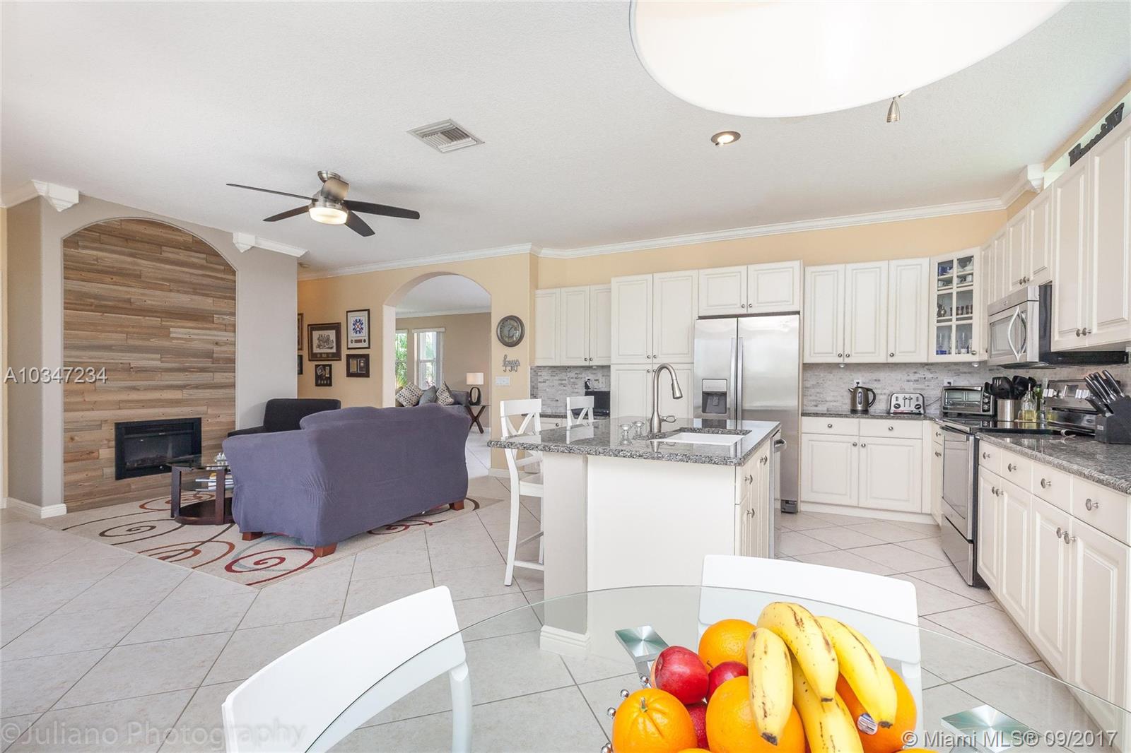 Beautiful lakefront 2 story home on an oversized lot in a quiet cul-de-sac. 5 Bedroom 3 bath. Den has newly installed cozy electronic fireplace. Great open floor plan, brand new kitchen with granite countertops, and stainless steel appliances with gorgeous view of patio/lakefront from your new saltwater, heated pool and spa. Oversized stone pool deck and large backyard great for entertaining. Gorgeous large master suite with jetted tub. Whole house water filtration and softening system. Installed impact accordian hurricane shutters on all windows. Beautiful etched/leaded glass double entry doors. Luxurious resort style community waterfront property. State of the art clubhouse facilities, recreation room, panoramic view exercise facilities, resort style pool, tennis and basketball courts.