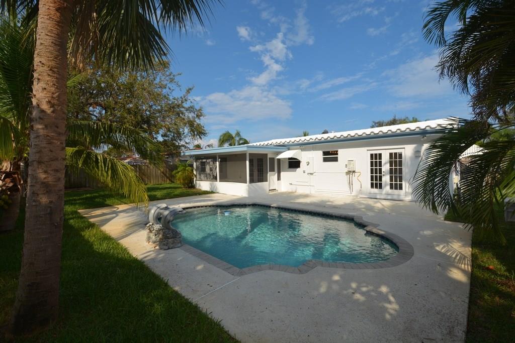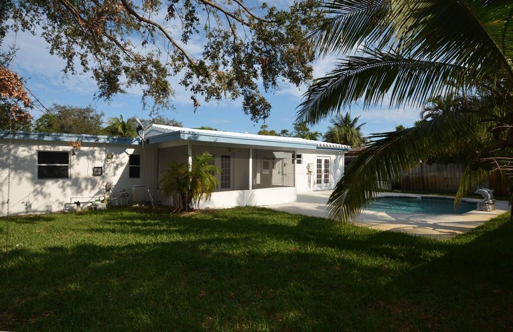 Charming 3BR/1BA home nestled in the Lyons Park neighborhood in East Pompano. Screened patio overlooks tropical, private yard and pool for year-round Florida entertaining. Kitchen features stainless appliances and granite counters. Neutral tile runs throughout living areas and bedrooms. Oversized utility room with washer and dryer with access from living room. Additional utility room with access from 2 car carport.