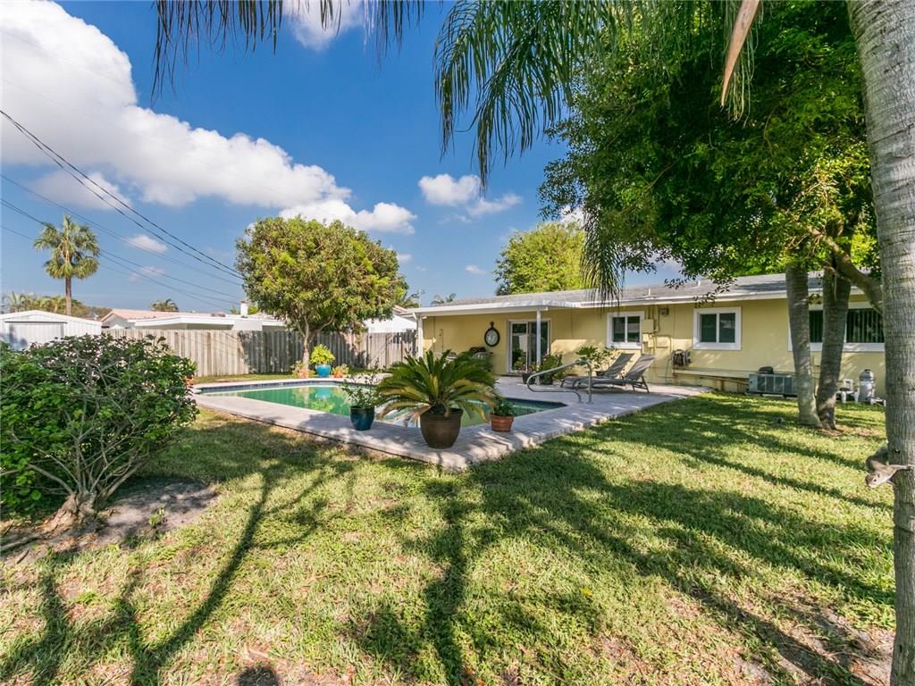 Wow! Total remodel! Kitchen features granite counter tops and stainless steel appliances. Both baths were completely gutted, new electric, new flooring, and more. All hurricane impact windows and doors throughout the entire home. Huge fenced in backyard with large pool and pavered patio area! Nice sun shade awning to enjoy outdoor entertaining. 3rd bedroom is used as office/den. Laundry room with extra storage. Great neighborhood only a few miles to the beach. This move in ready home, just oozes charm!